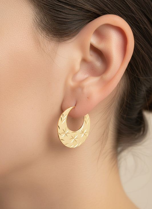 Star Sandblasting Nattiyan Earrings, Real Silver 24k Gold Filled