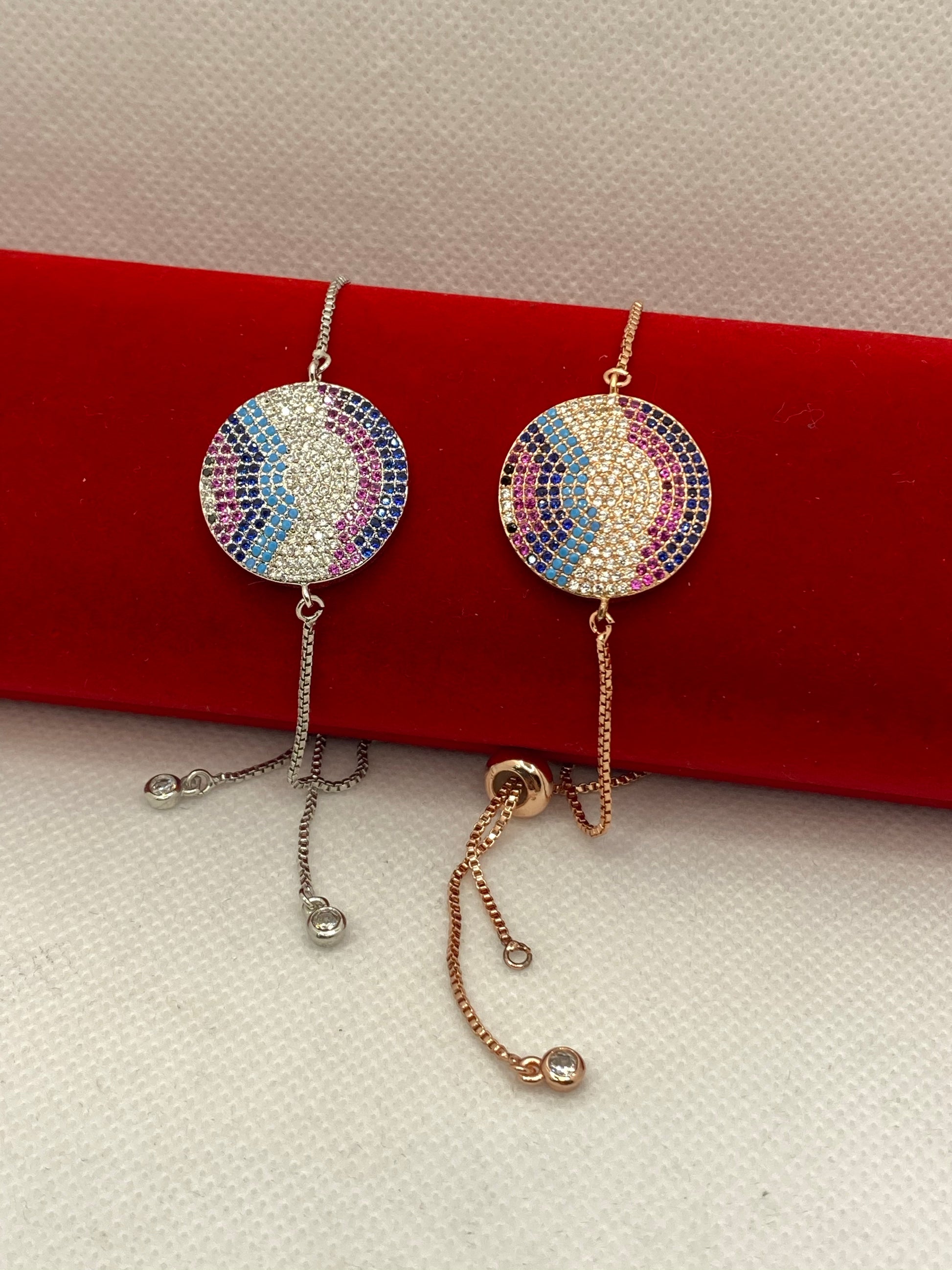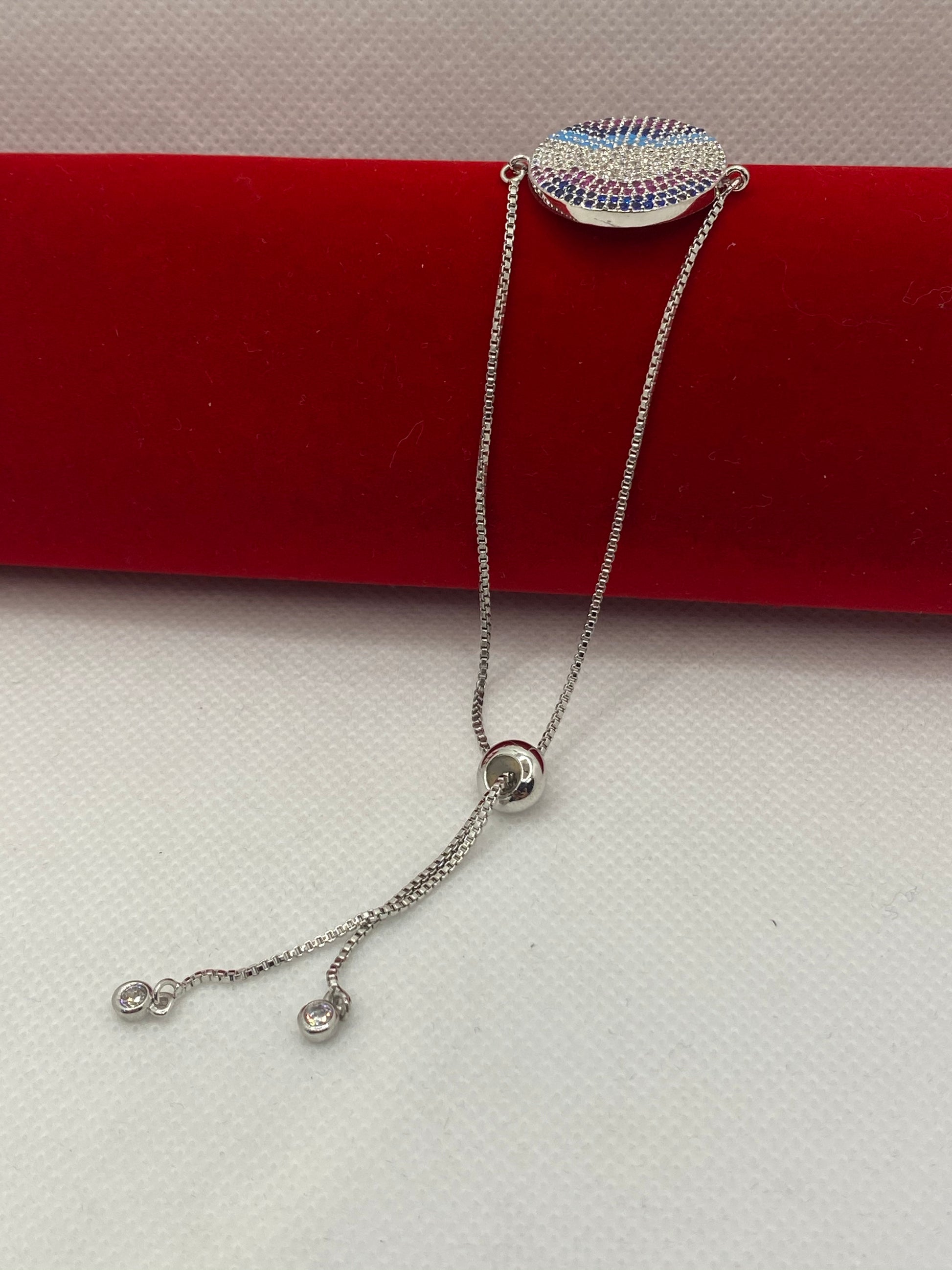 Bracelet multicolore plaqué or blanc 18 carats. Idéal à offrir ou à porter au quotidien. Produit de qualité, fabriqué sans nickel ni plomb et hypoallergénique.
