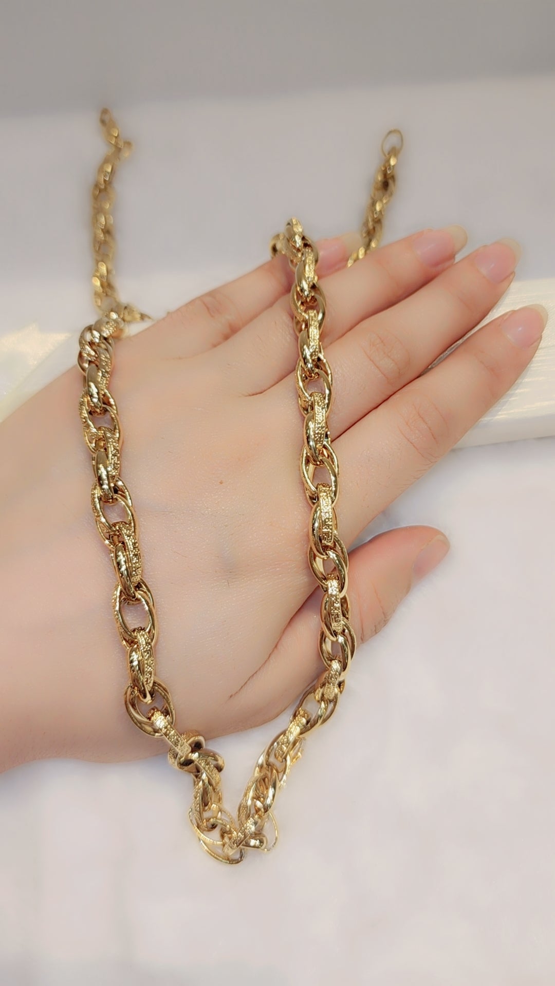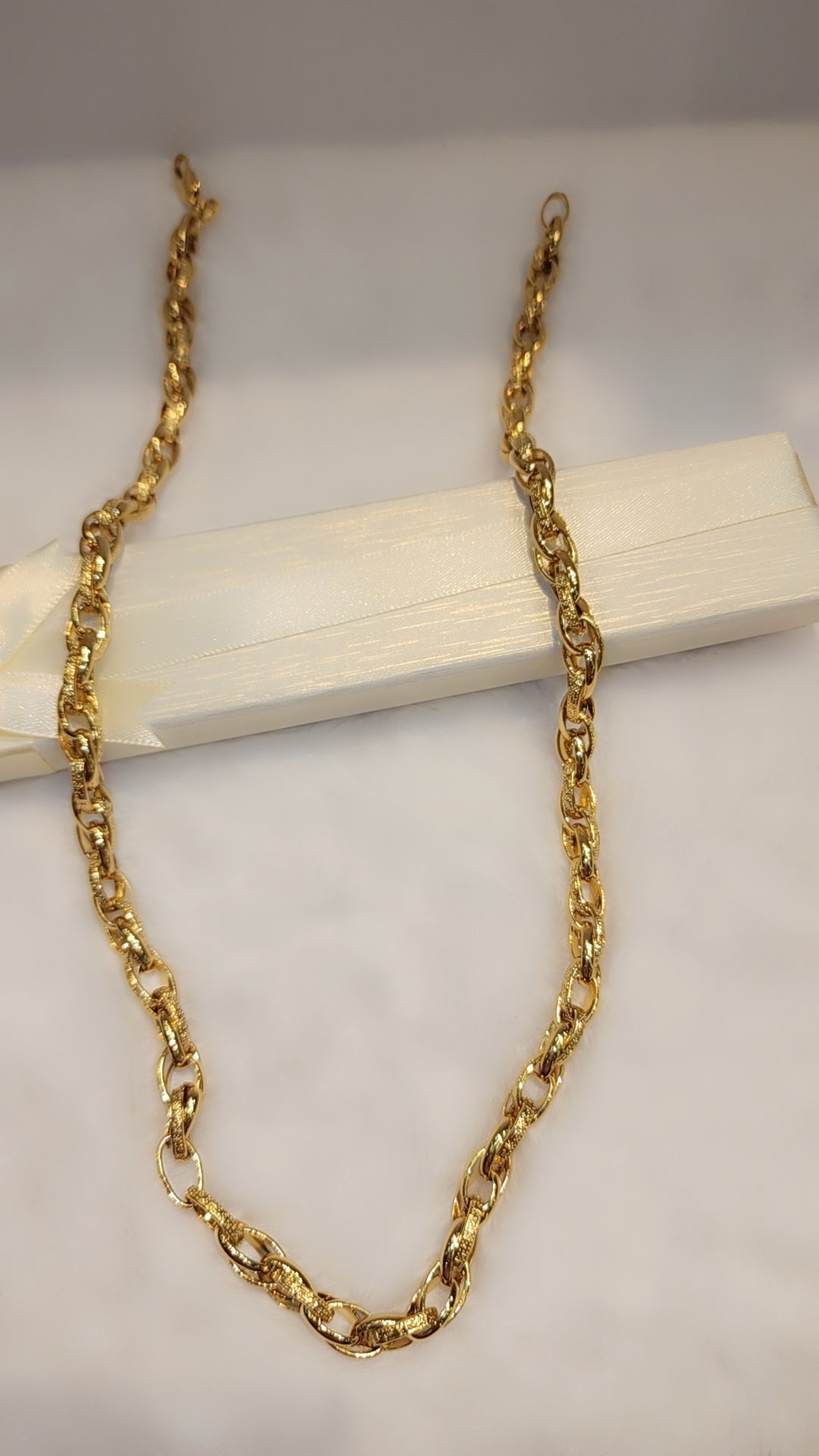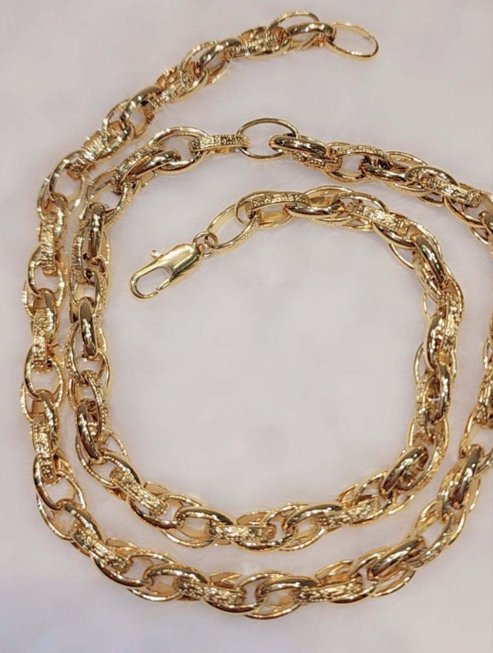 Cette chaîne plaquée or est l'accessoire idéal pour ajouter une touche d'élégance à votre tenue. Fabriquée avec des matériaux de haute qualité, elle allie durabilité et style. Ajoutez une touche sophistiquée à votre look avec cette magnifique chaîne plaquée or.