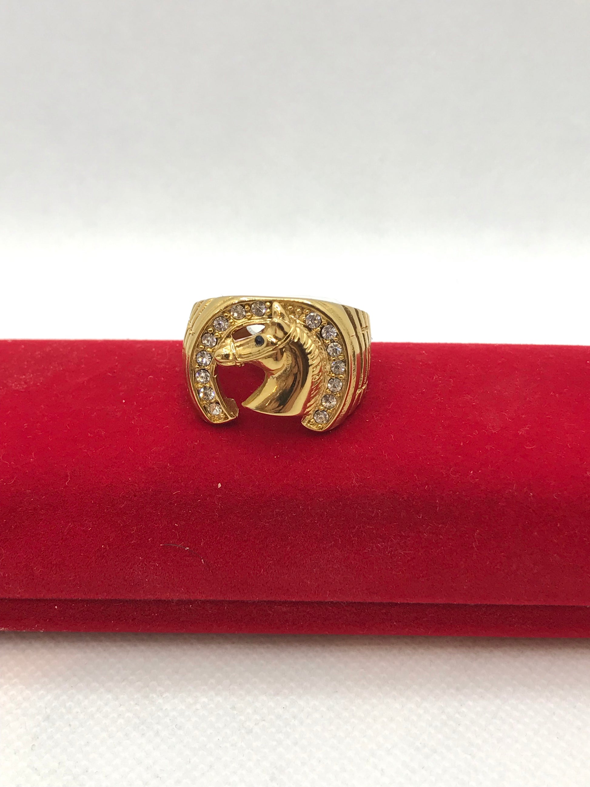 Bague Fer à Cheval en plaqué or 18 carats, disponible pour homme. Sans nickel ni plomb. À porter au quotidien pendant deux ans. Couleur garantie. Pierre : oxyde de zirconium. À retirer en boutique ou à commander en ligne.