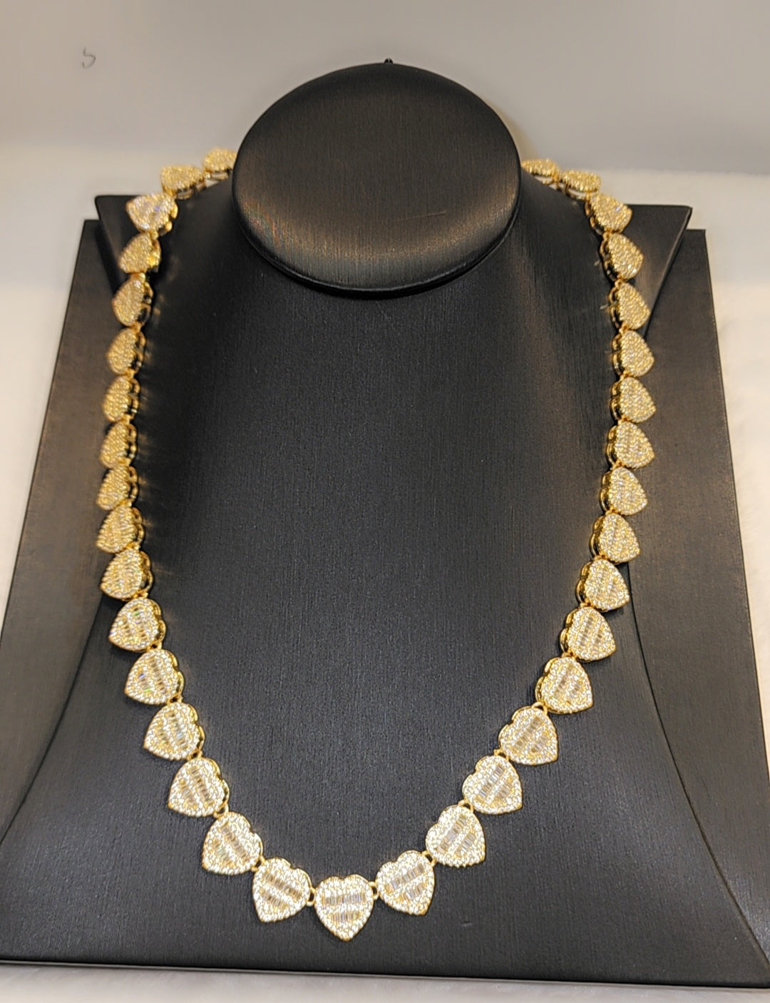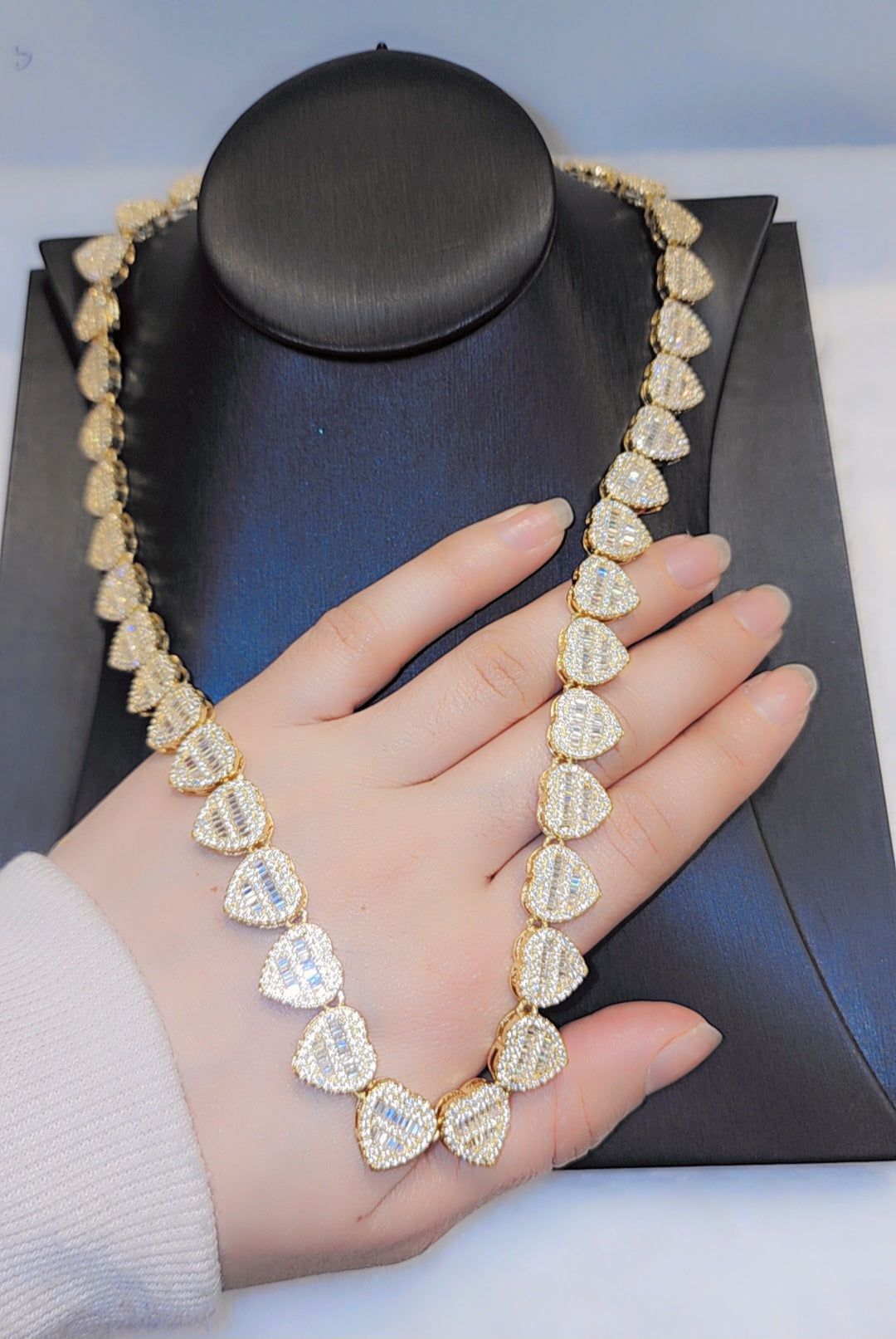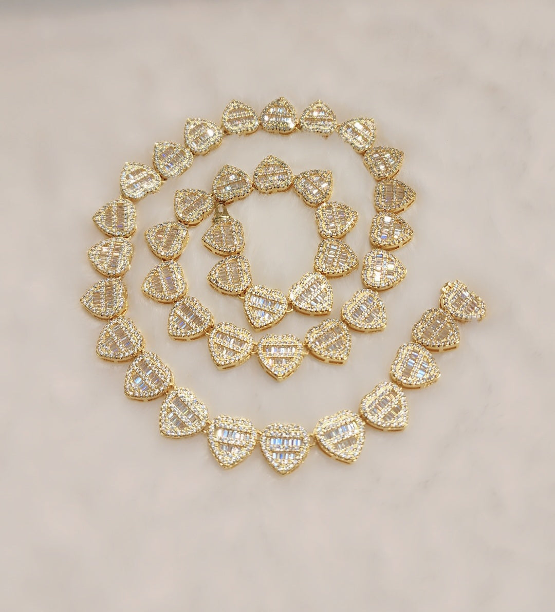 Sublimez votre style avec notre chaîne plaquée or. Avec ses superbes pierres en oxyde de zirconium et son motif cœur, elle apporte une touche de sophistication à toutes vos tenues. Fabriquée avec des matériaux de haute qualité et plaquée or pour un look luxueux, elle sublime votre style dès aujourd'hui.