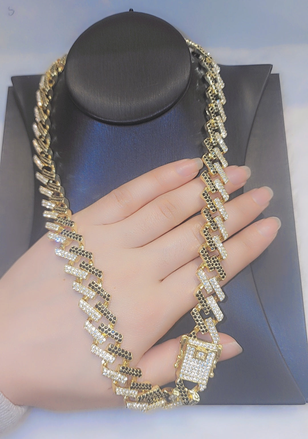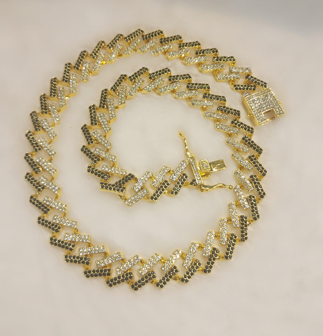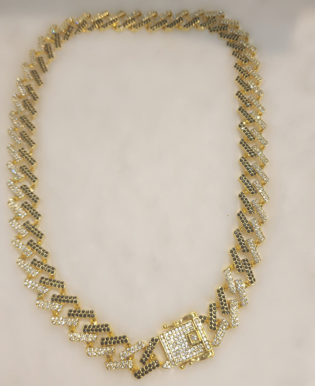 Ajoutez une touche de luxe et d'éclat à toutes vos tenues avec notre chaîne plaquée or. Composée de zircones cubiques de haute qualité en forme de cœur, cette chaîne ne passera pas inaperçue. Ses pierres bicolores uniques lui confèrent une touche d'élégance et de style. Sublimez votre style avec cet accessoire indispensable.