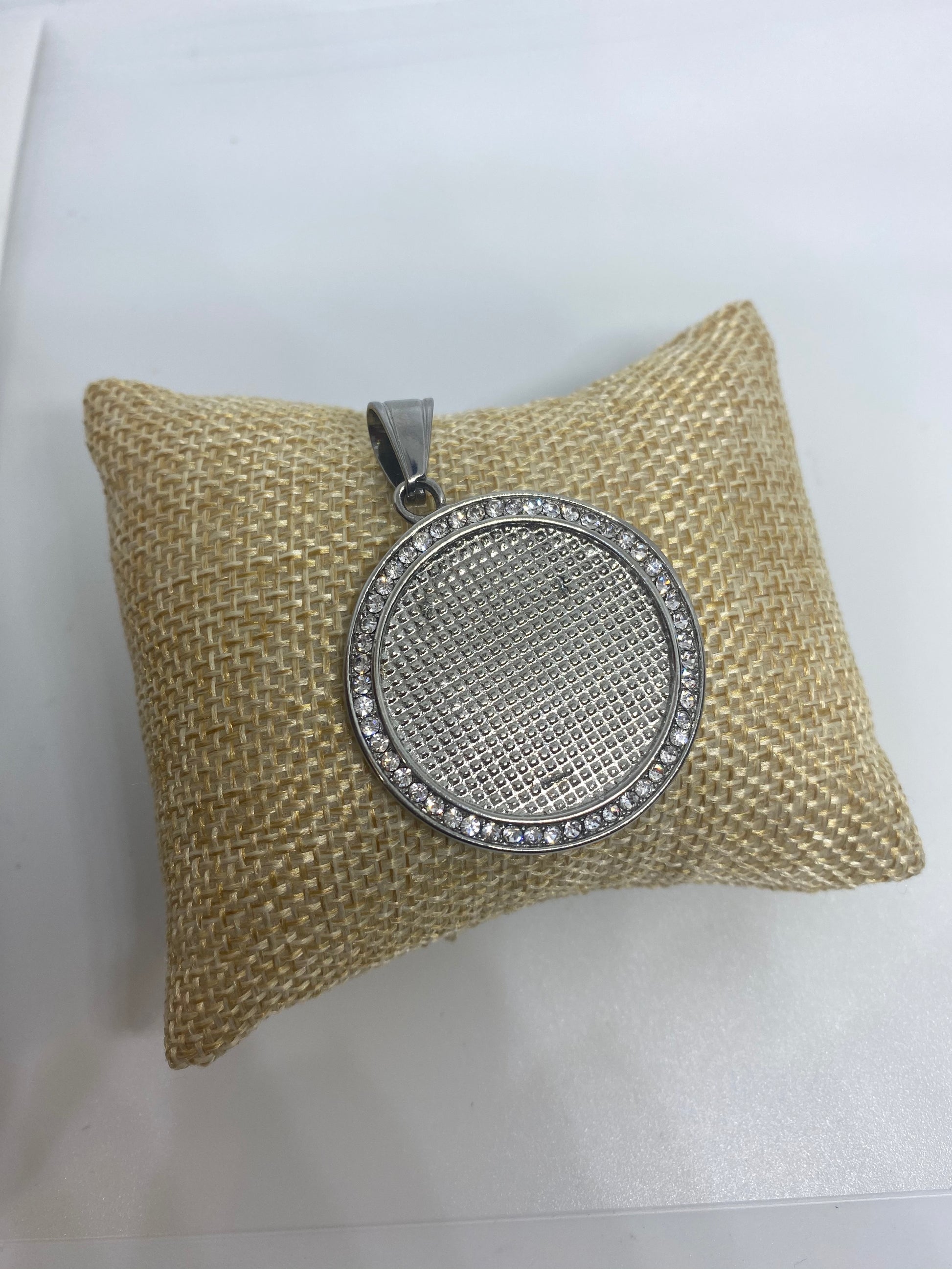 Grand pendentif circulaire avec bordure en pierres en liquidation