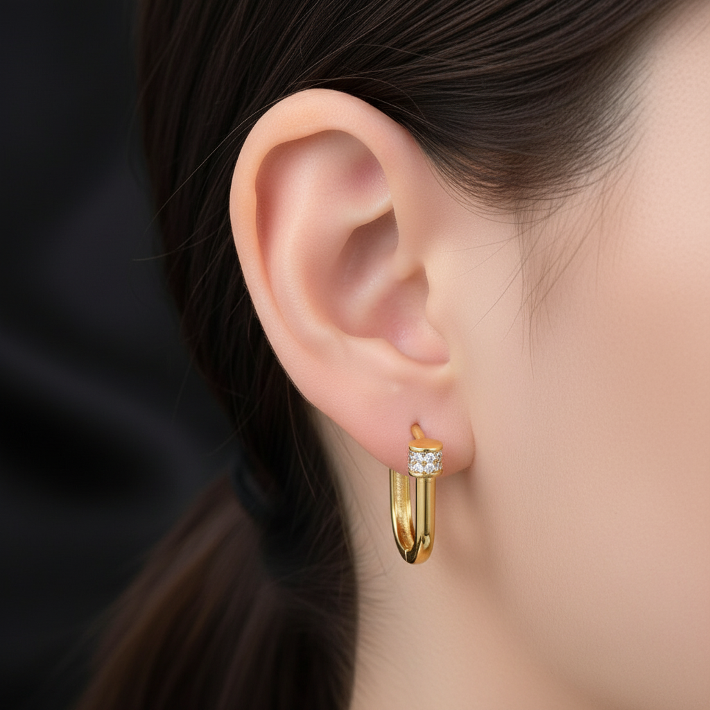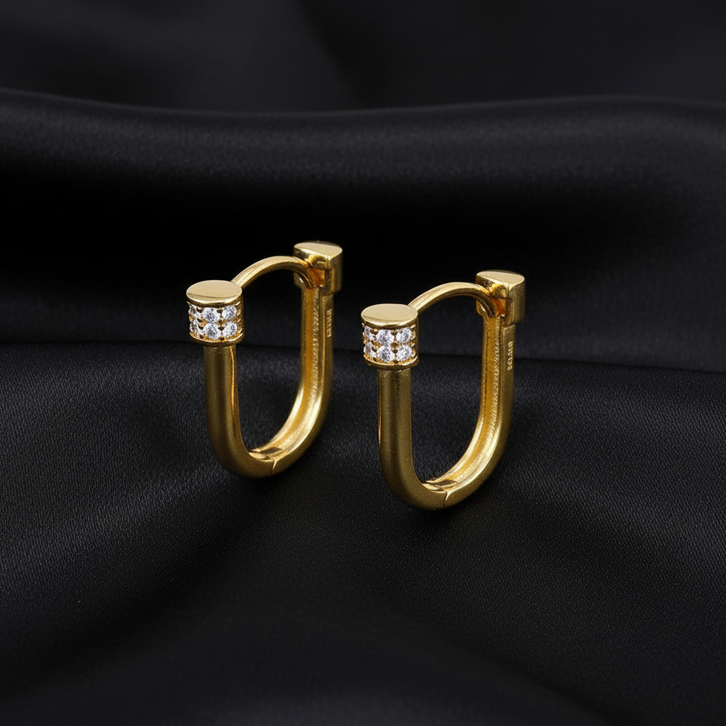 Boucles d'oreilles créoles en or 10 carats, zircone cubique, 13x16 mm, épaisseur 4 mm, le poids est pour 1 paire.