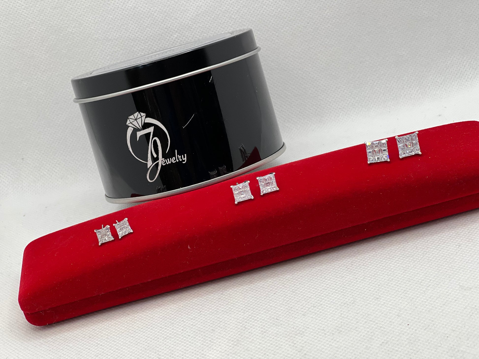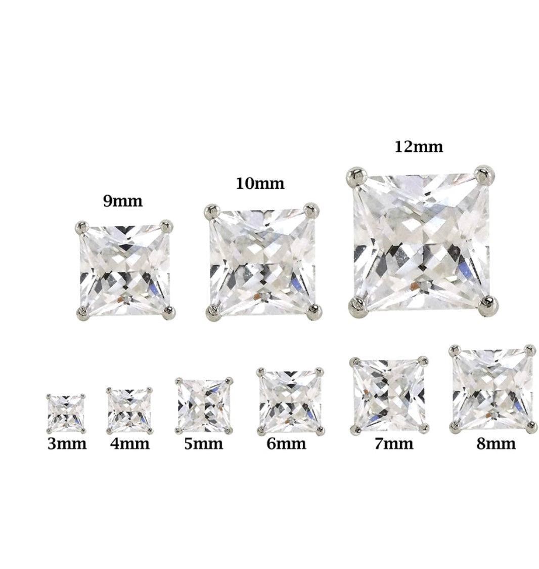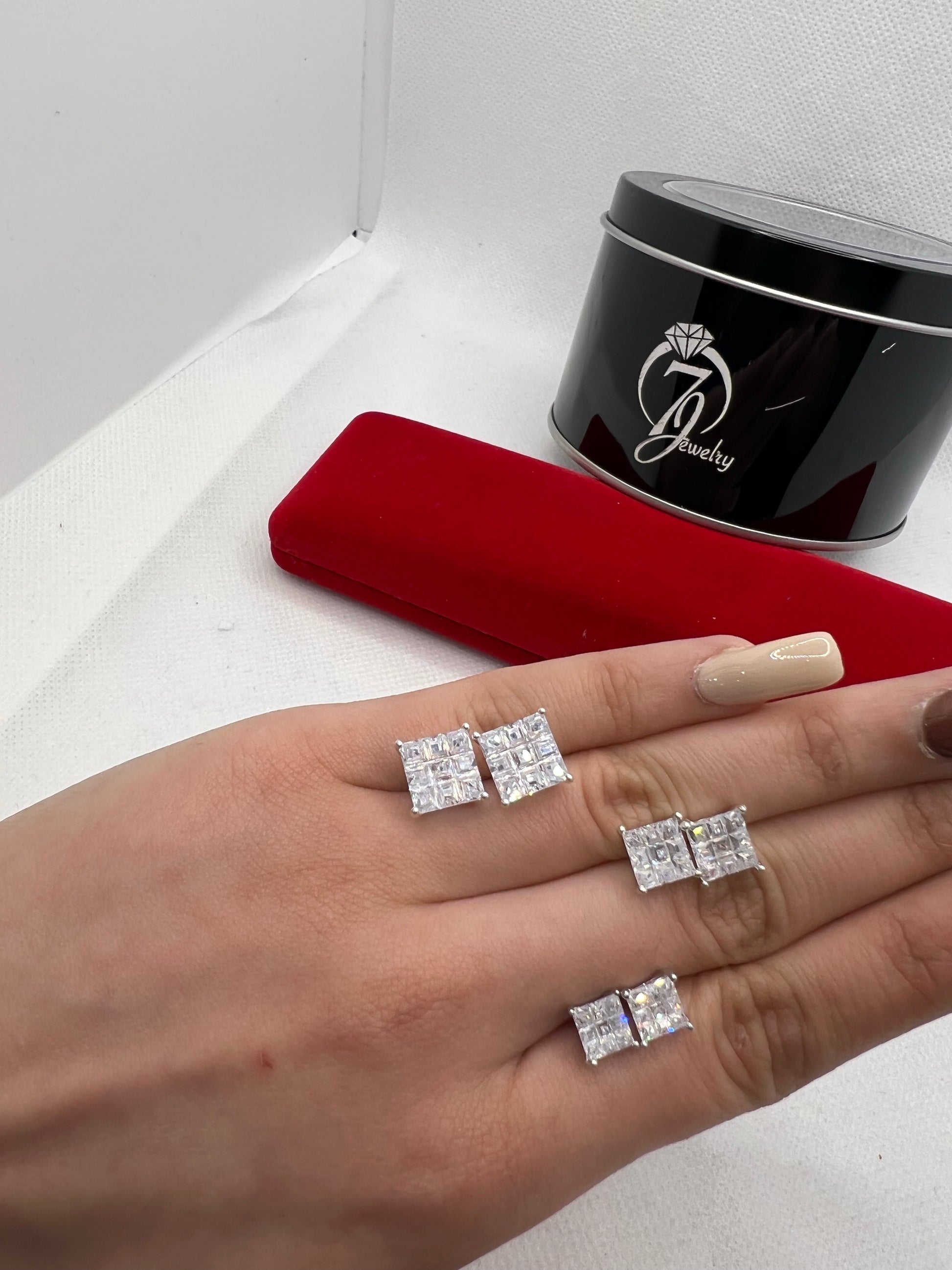 Boucles d'oreilles à tige carrées en argent sterling taillées sur table