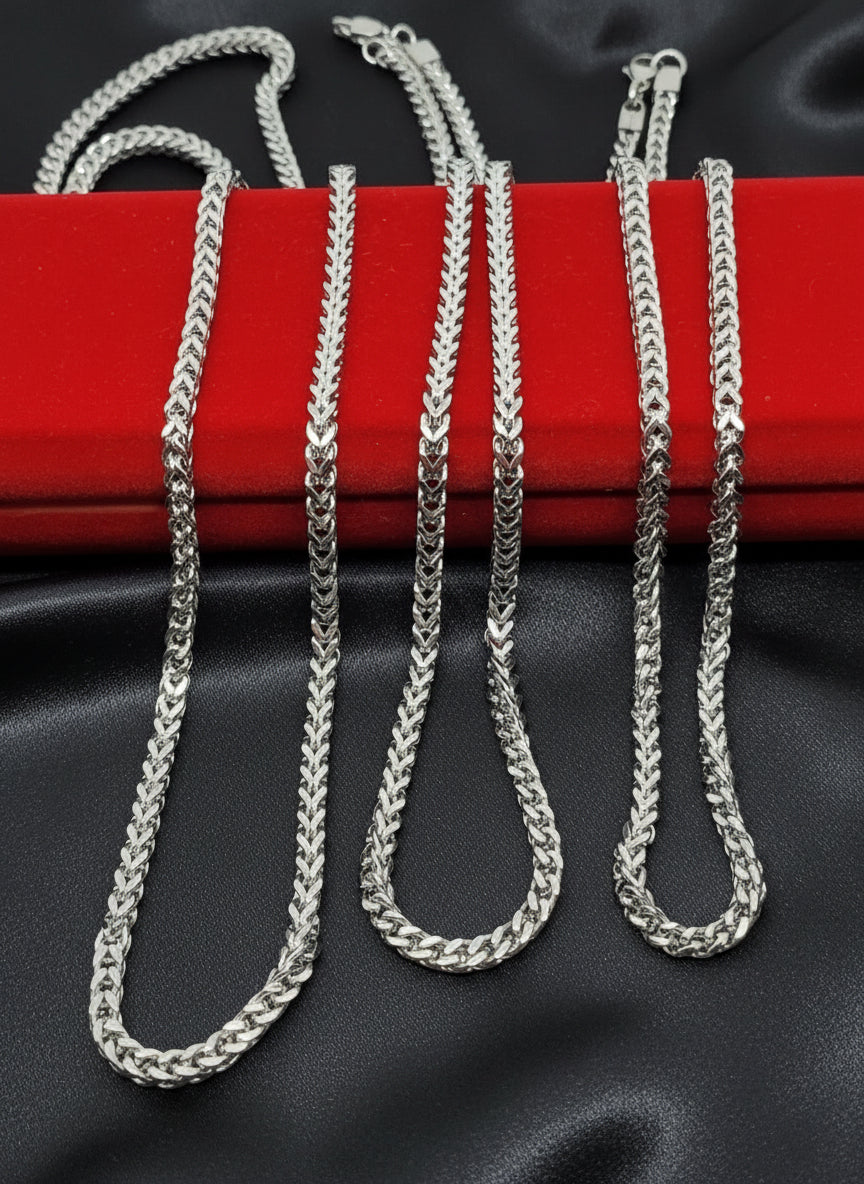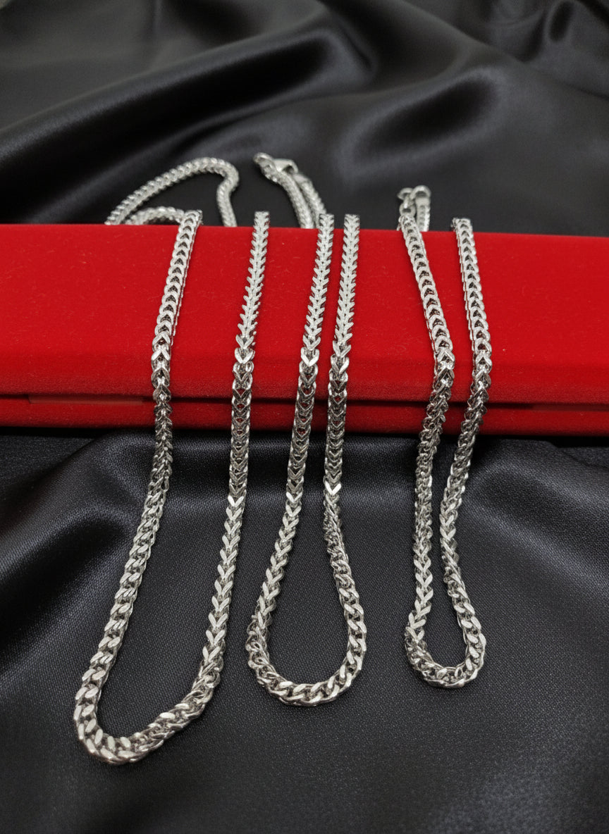 Découvrez notre chaîne unisexe Franco en acier inoxydable, fabriquée en acier inoxydable hypoallergénique sans nickel ni plomb, pour une couleur et une durabilité garanties à vie. Disponible en plusieurs longueurs et dans une épaisseur polyvalente de 3 mm, elle est l'accessoire idéal du quotidien ou un cadeau attentionné.