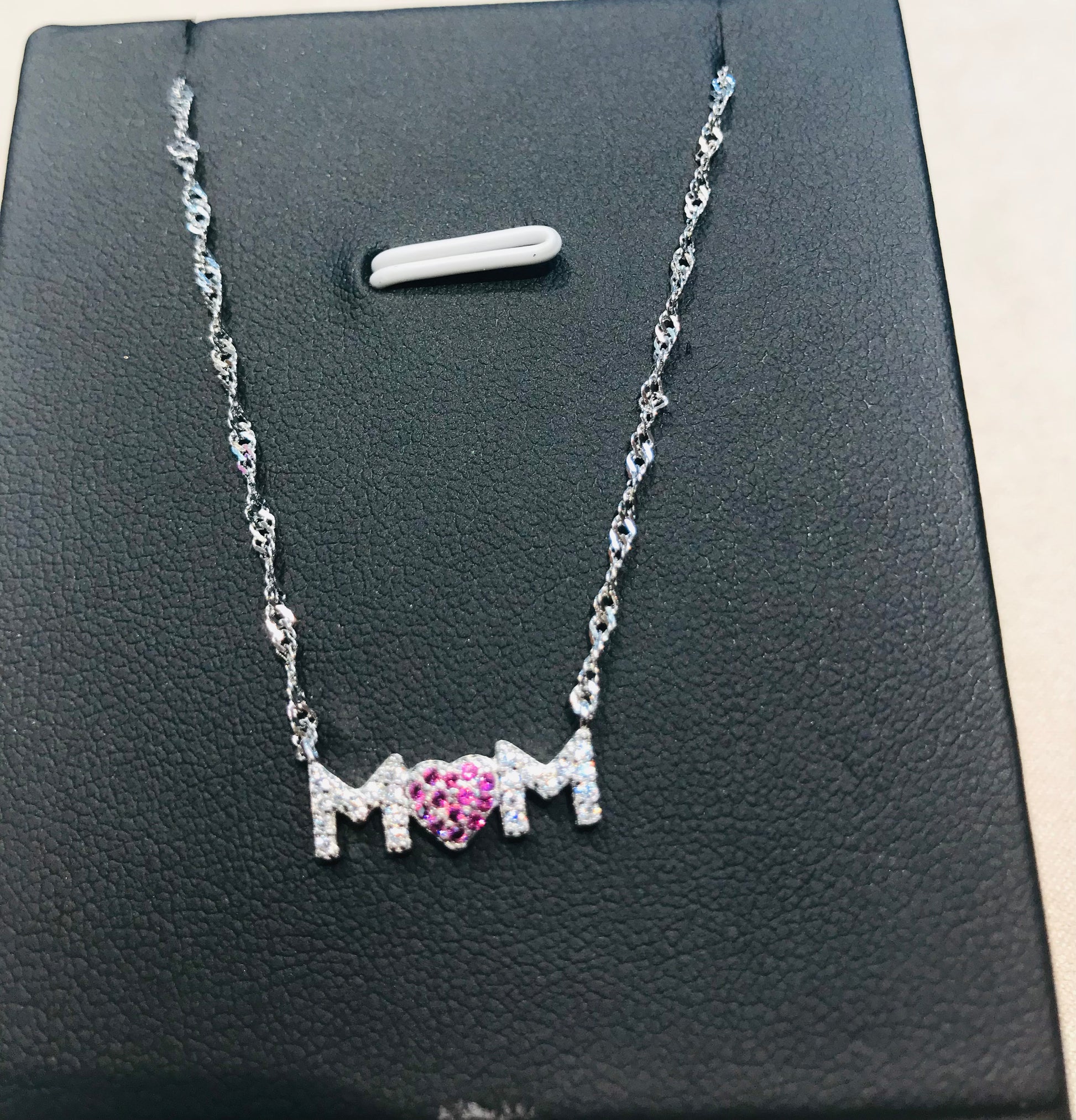 Pendentif MOM en argent sterling avec rhodium, 5x16 mm avec zircone cubique, 16" + extension de 2"