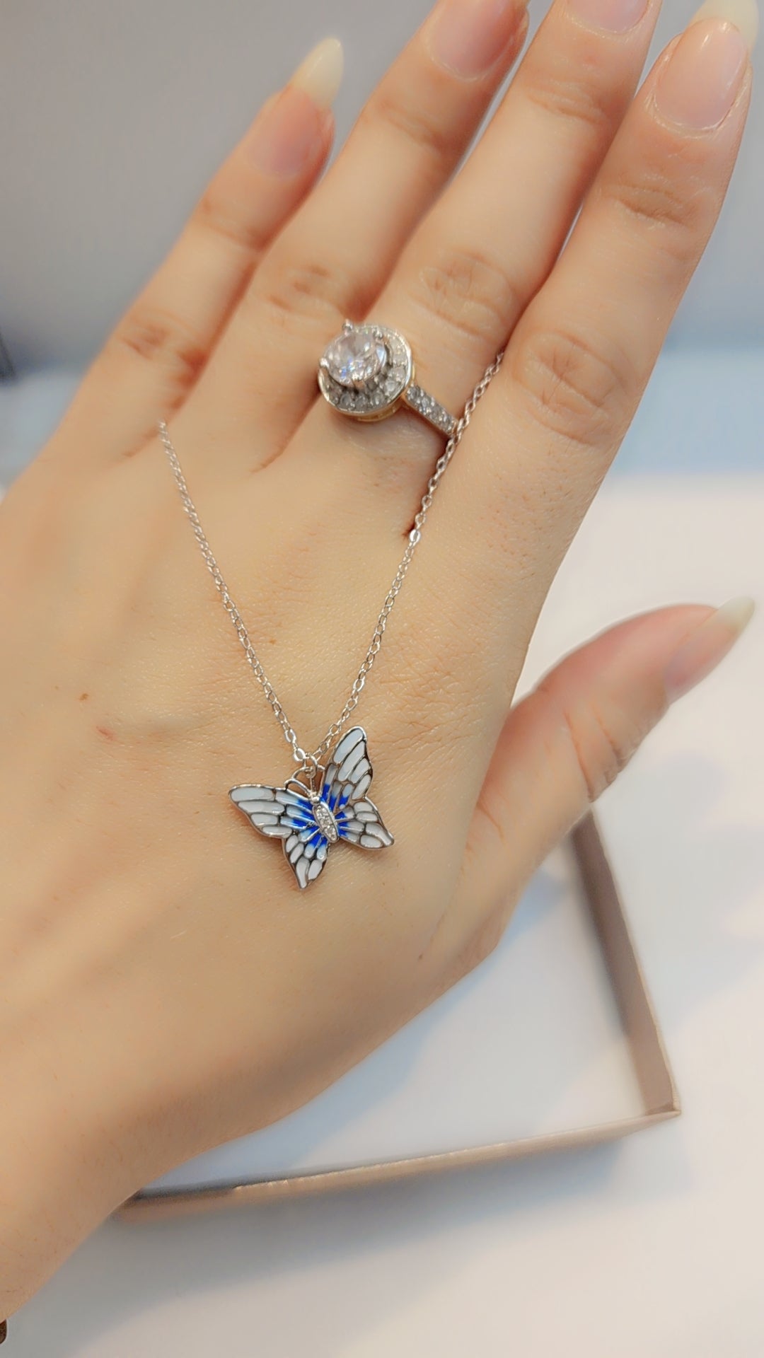 Collier papillon en argent sterling avec rhodium, 14x16 mm, extension 16" + 2"