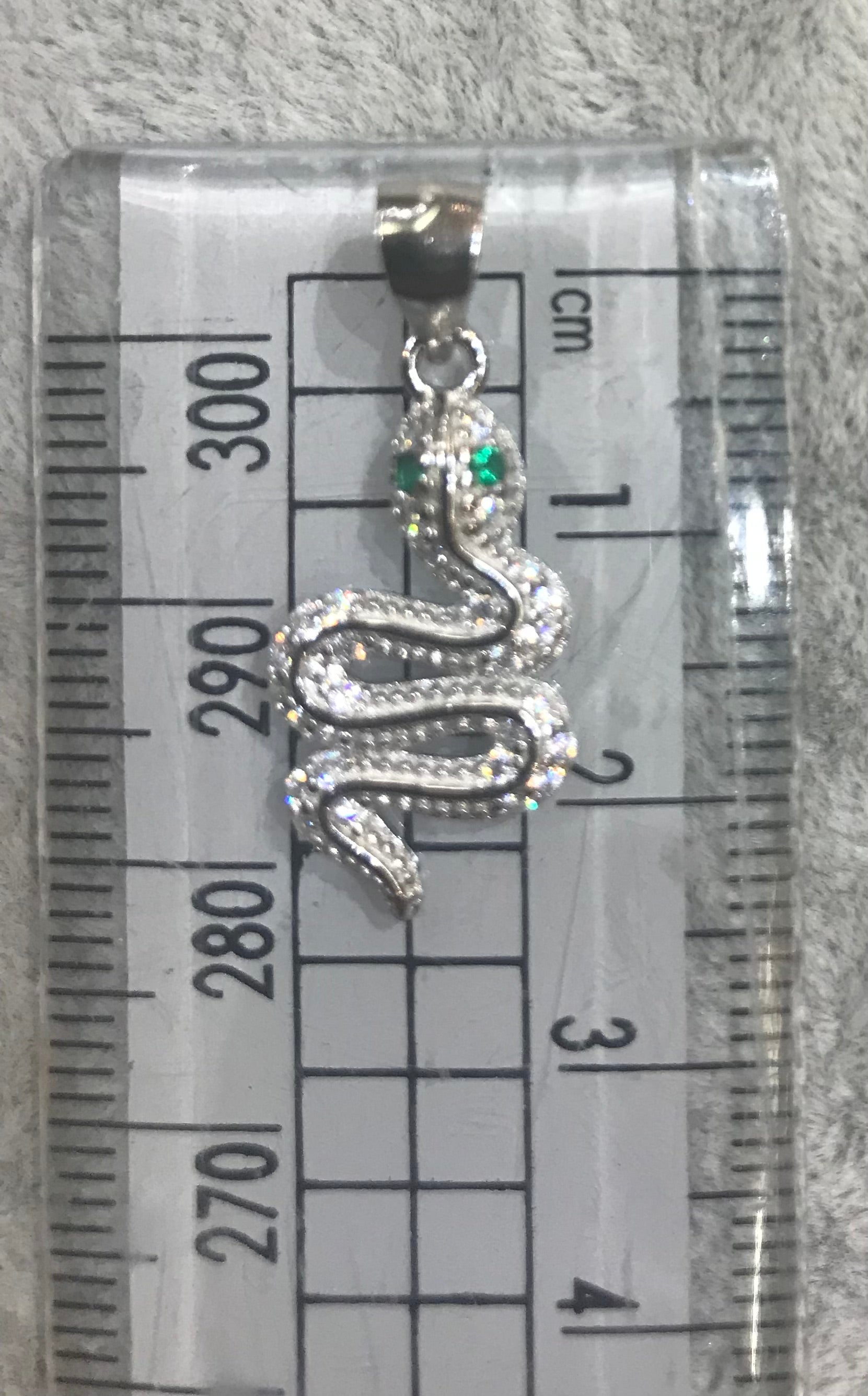Pendentif serpent en argent sterling 925 rhodié, 15 x 24 mm, serti de zircones cubiques
