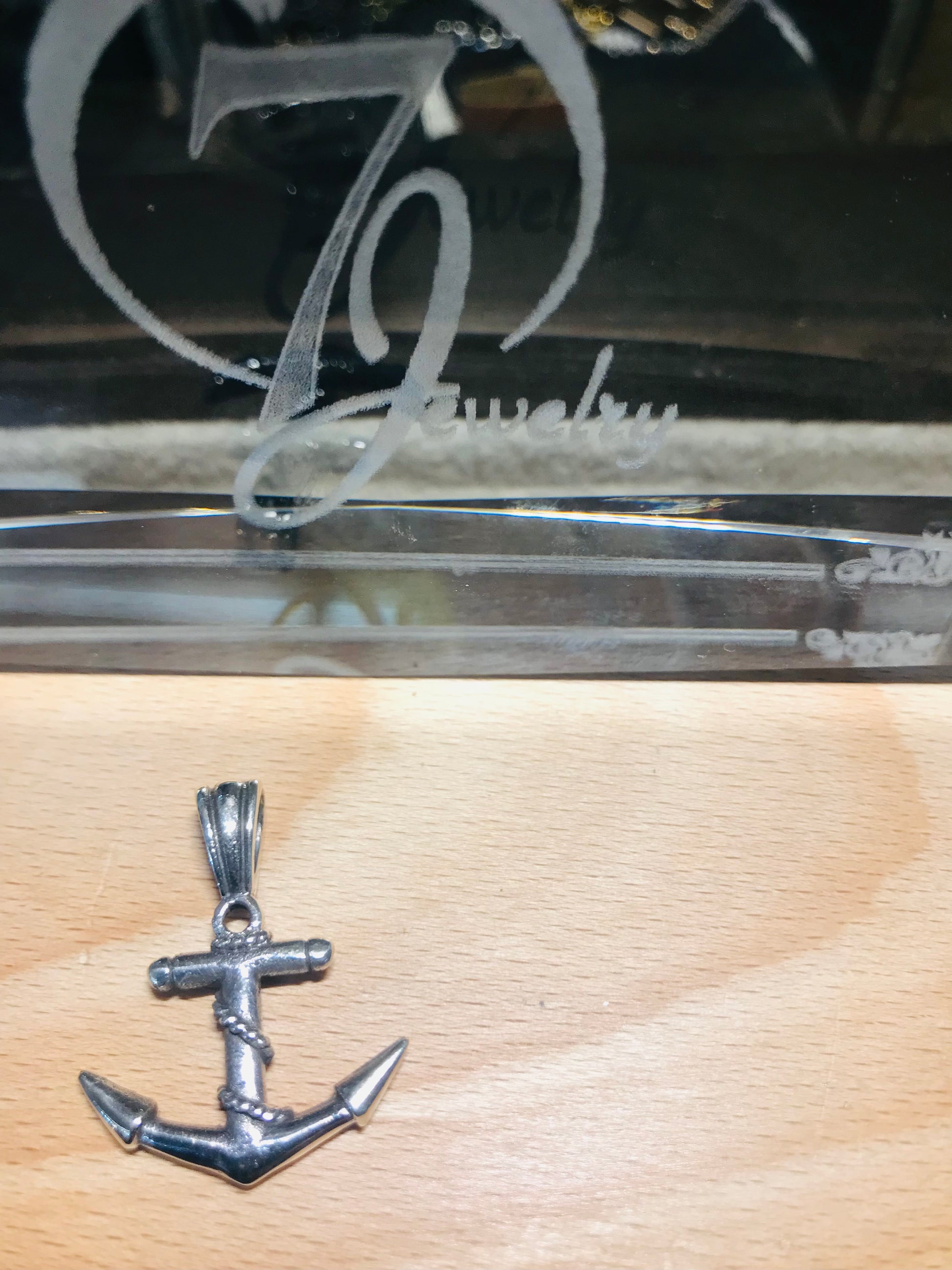Pendentif en argent sterling, style fantaisie, en forme d'ancre lisse. Dimensions approximatives du cadre : 27 mm (L) x 21 mm (l).