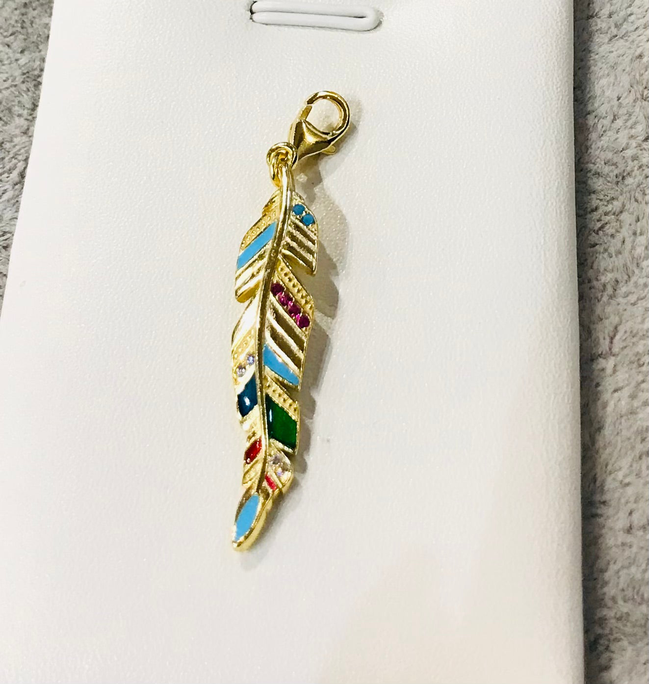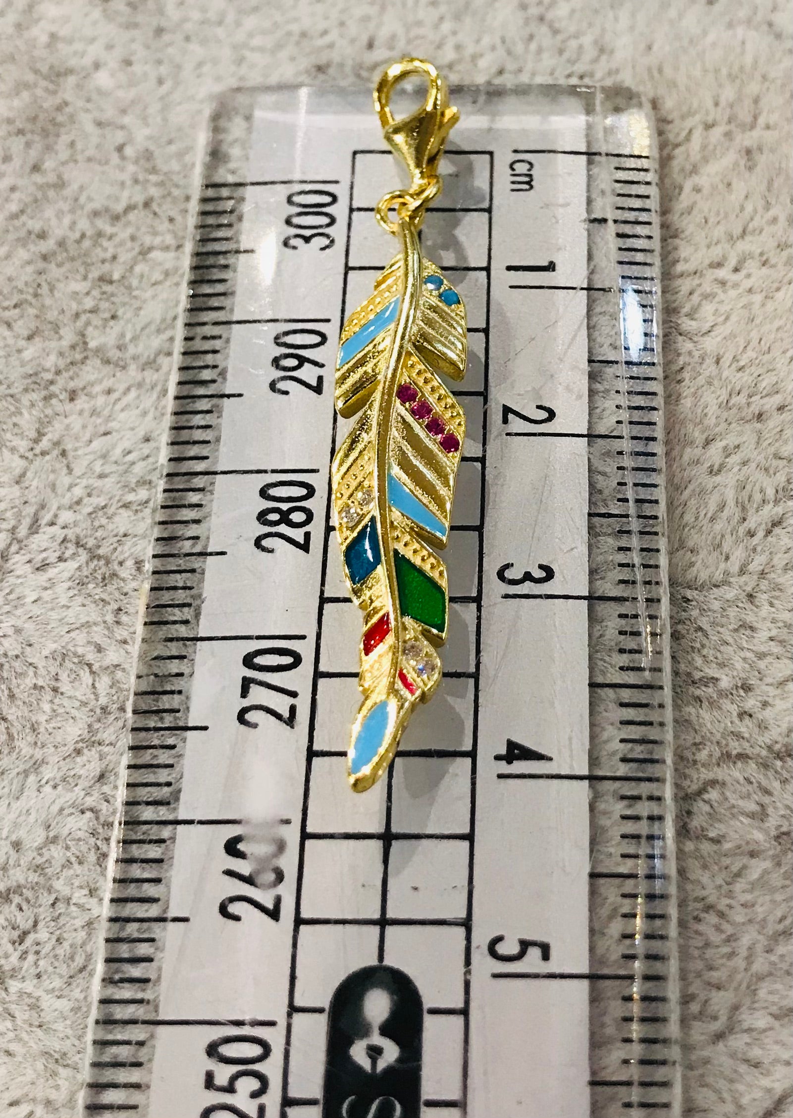 Pendentif plume en argent sterling et or, 8x34 mm, avec zircone cubique