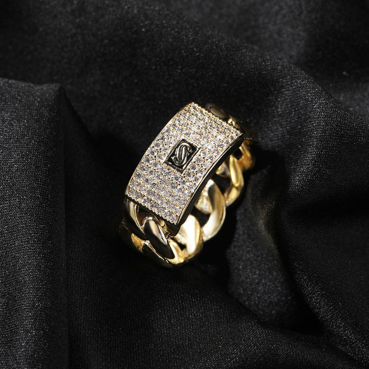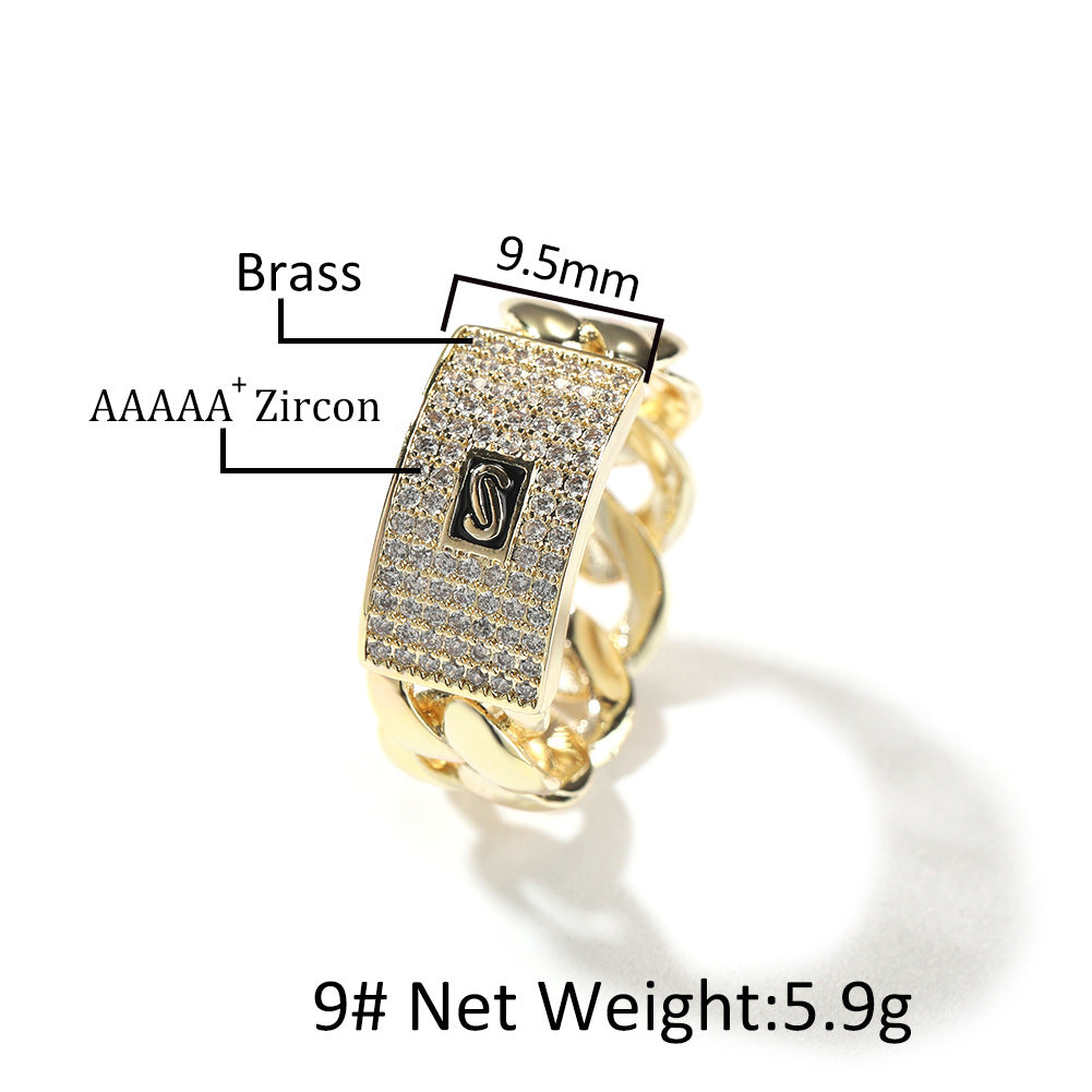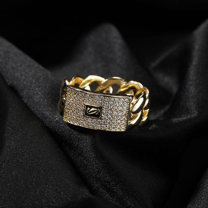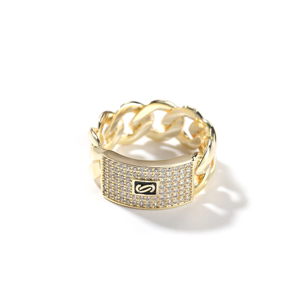 14K ਗੋਲਡ ਪਲੇਟਿਡ ਪਿਆਰਾ ਮੋਨਾਕੋ ਐਸ ਕਿਊਬਿਕ ਜ਼ਿਰਕੋਨੀਆ ਕਾਪਰ ਕਿਊਬਨ ਰਿੰਗ
