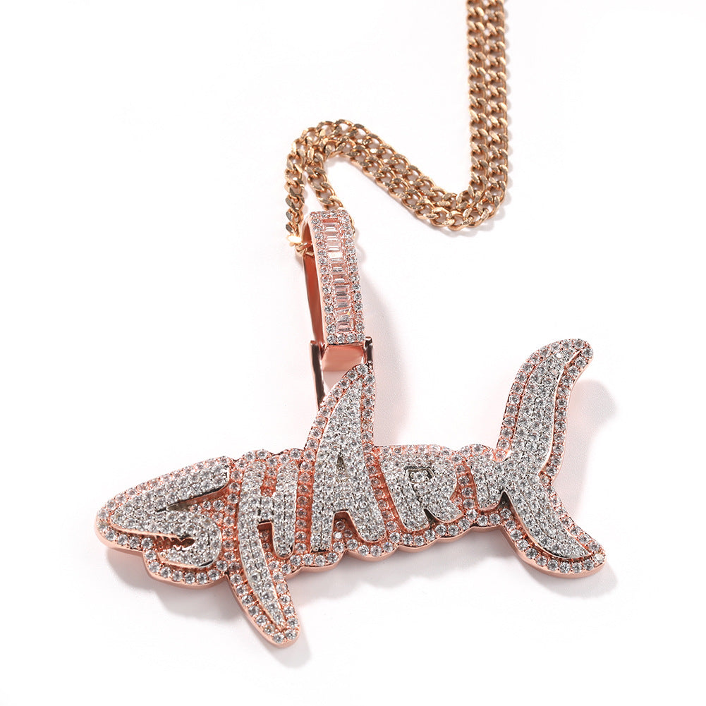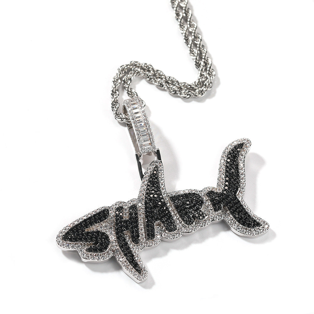 3D ਆਈਸਡ ਆਊਟ Cz ਸ਼ਾਰਕ ਲੈਟਰ ਪੈਂਡੈਂਟ ਚਾਰਮ