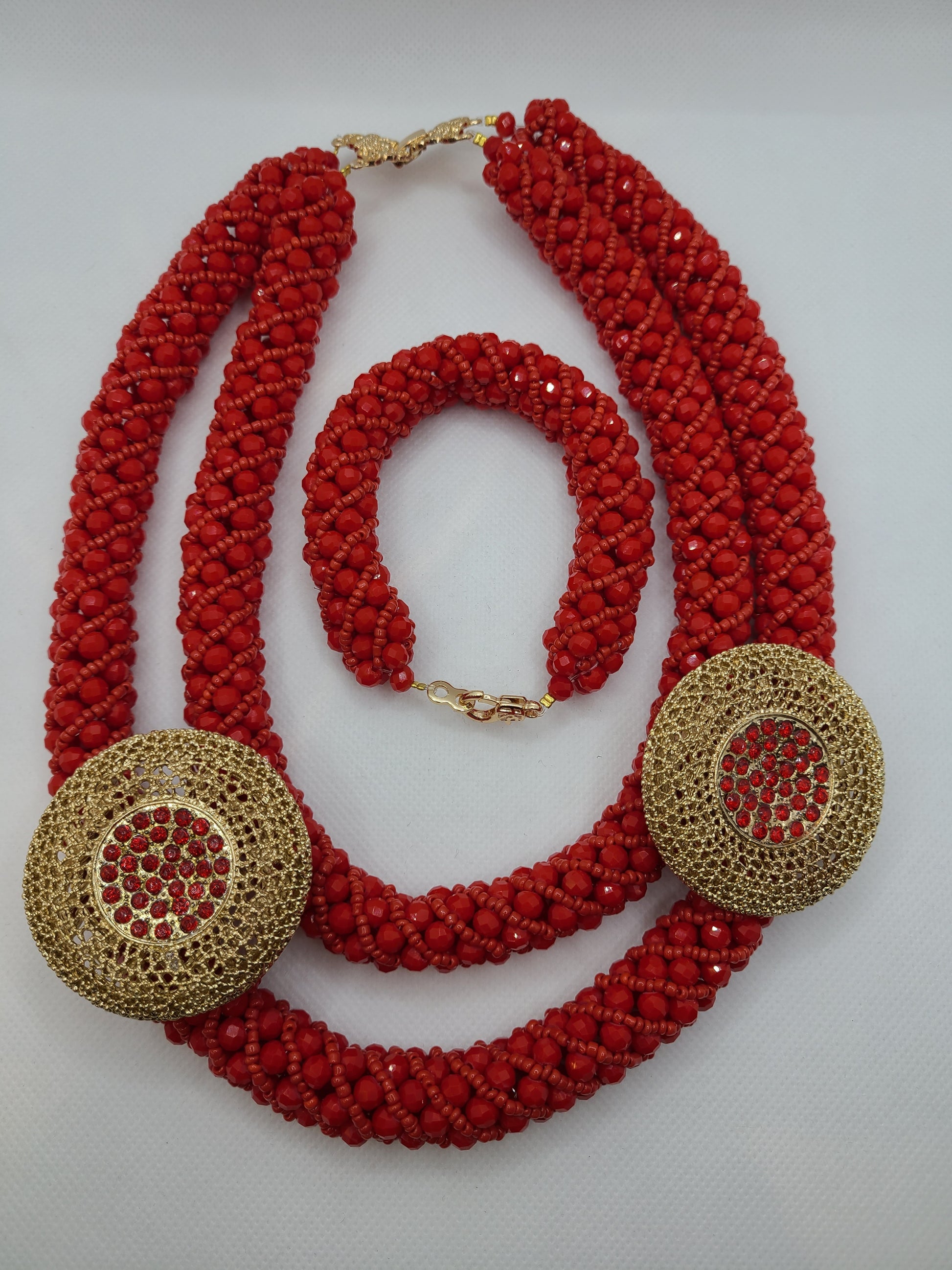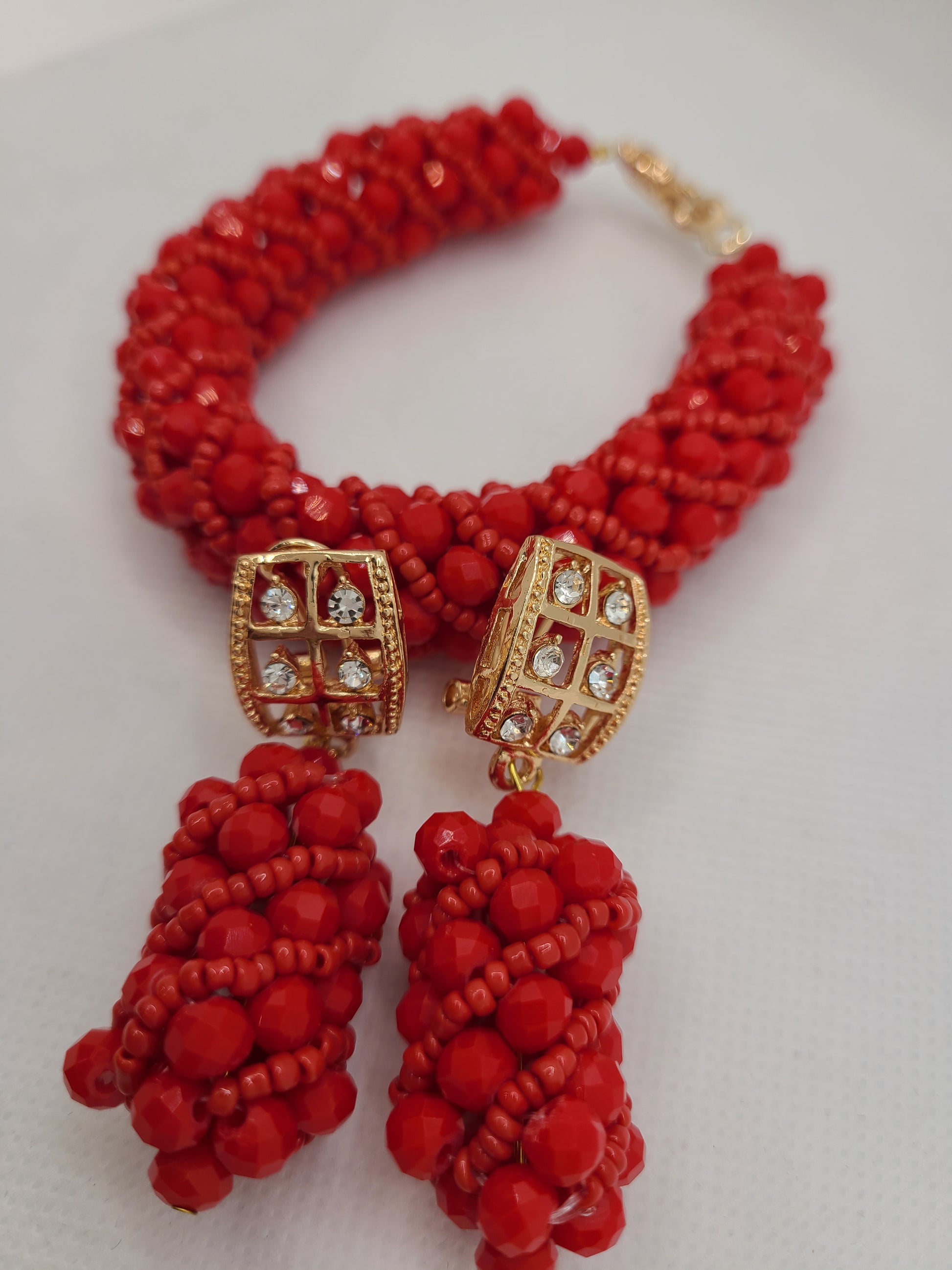 ਕੀਮਤ ਹਾਰ, ਕੰਨਾਂ ਦੀਆਂ ਵਾਲੀਆਂ ਅਤੇ ਬਰੇਸਲੇਟ ਦੇ ਸੈੱਟ ਲਈ ਹੈ। ਨਿੱਕਲ ਅਤੇ ਸੀਸਾ ਮੁਕਤ/ਹਾਈਪੋਐਲਰਜੀਨਿਕ। ਬਿਲਕੁਲ ਨਵਾਂ ਅਤੇ ਕਦੇ ਨਹੀਂ। ਮੌਕਿਆਂ 'ਤੇ ਪਹਿਨਣ ਲਈ ਵਧੀਆ।