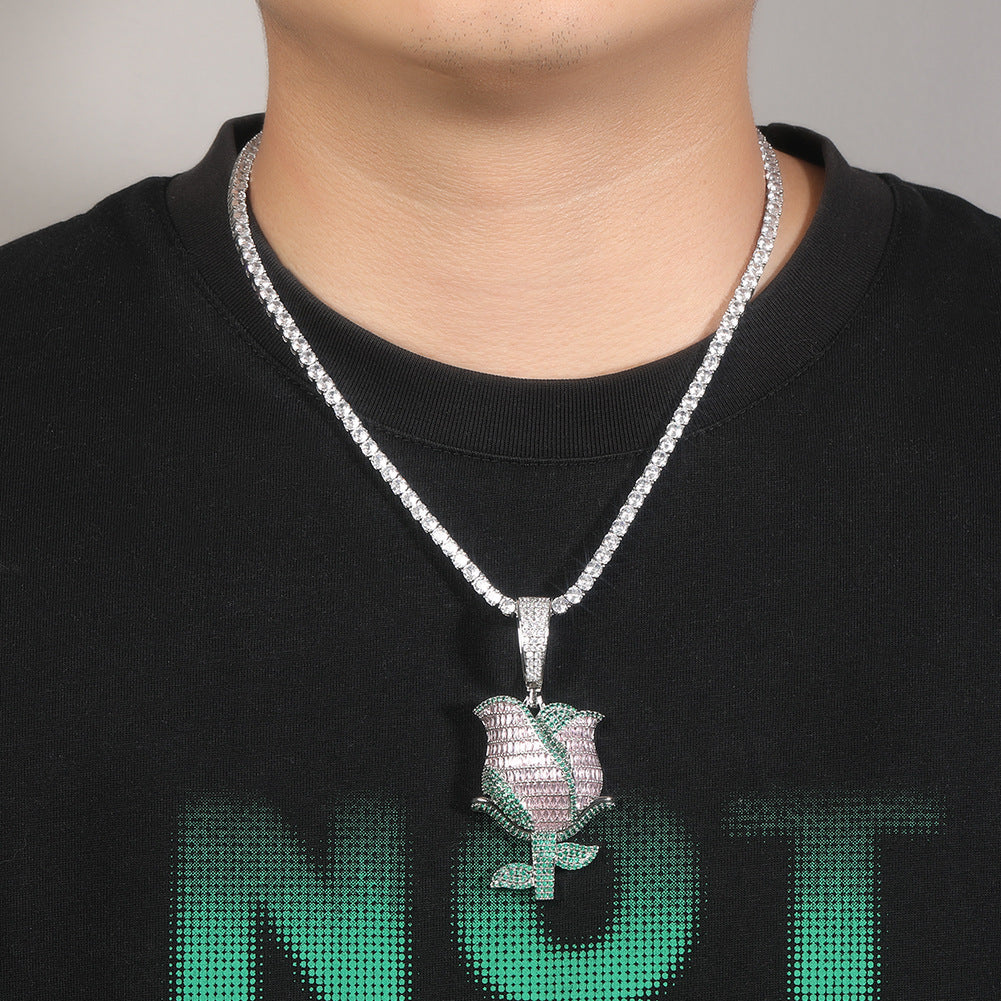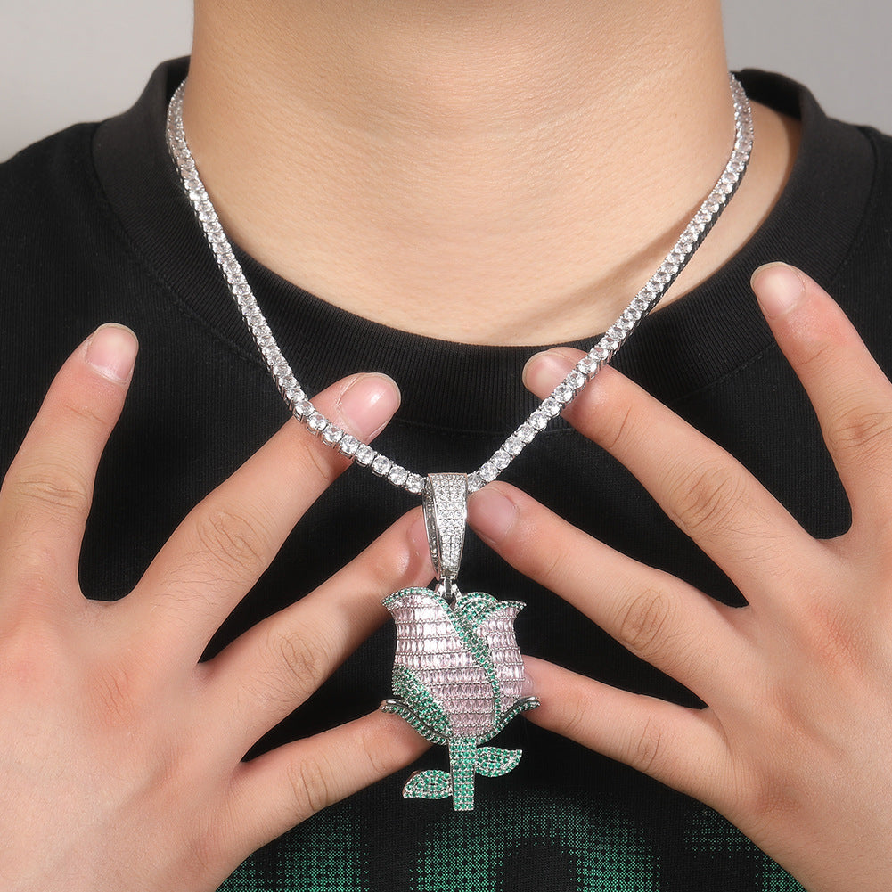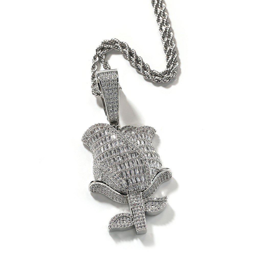 ਬੈਗੁਏਟ ਡਾਇਮੰਡ ਰੋਜ਼ ਫਲਾਵਰ ਚਾਰਮ ਪੈਂਡੈਂਟ