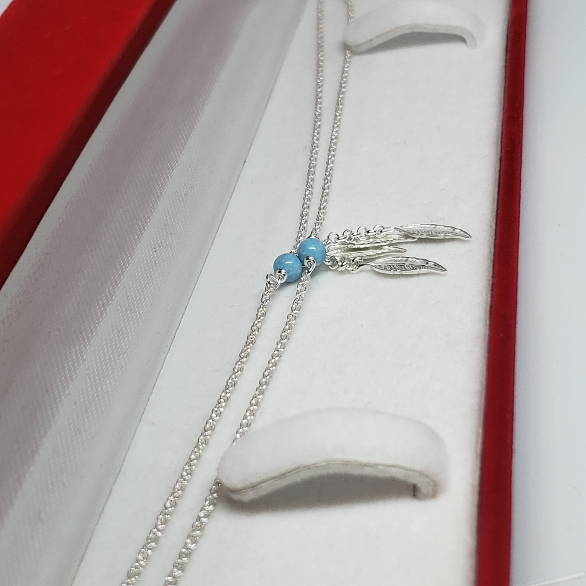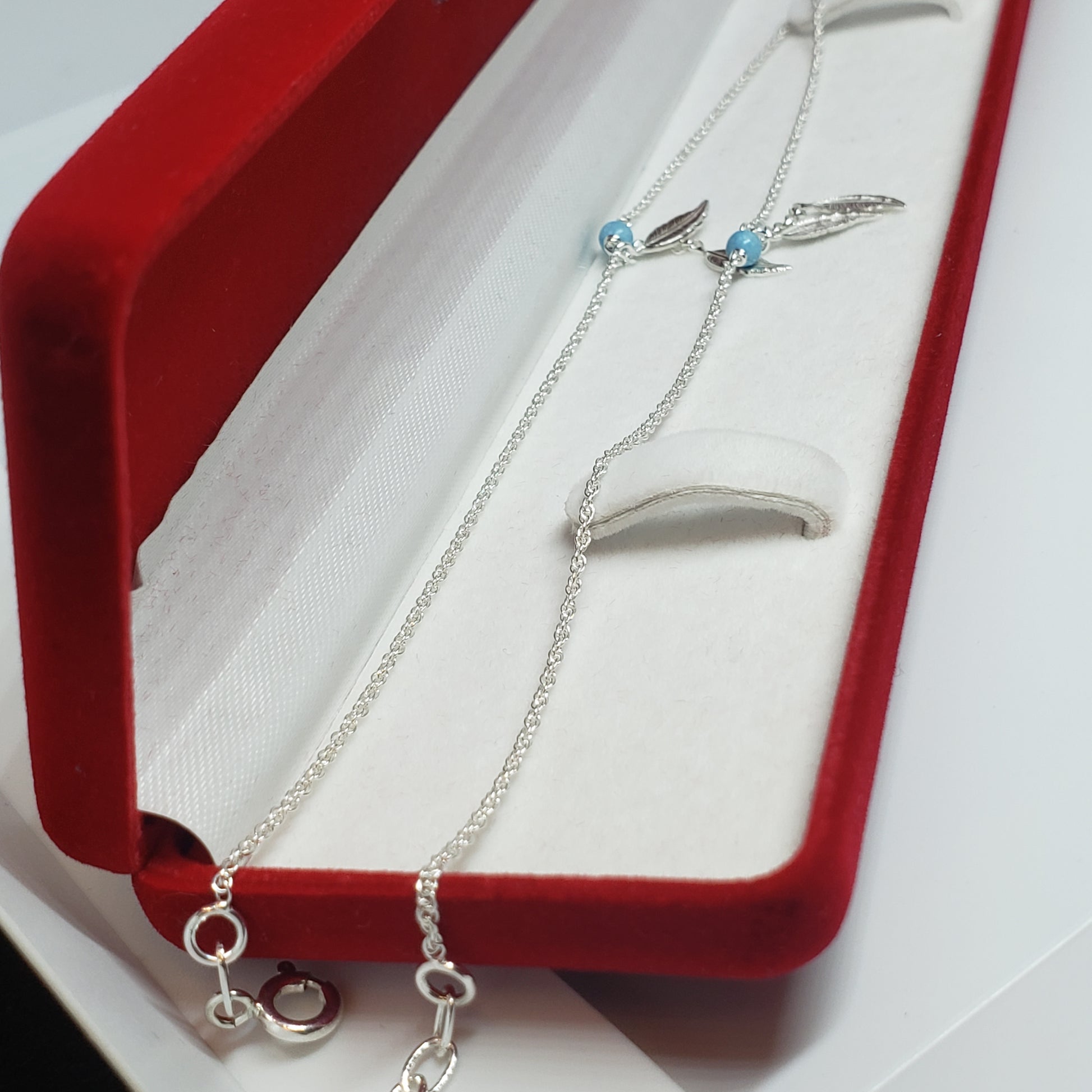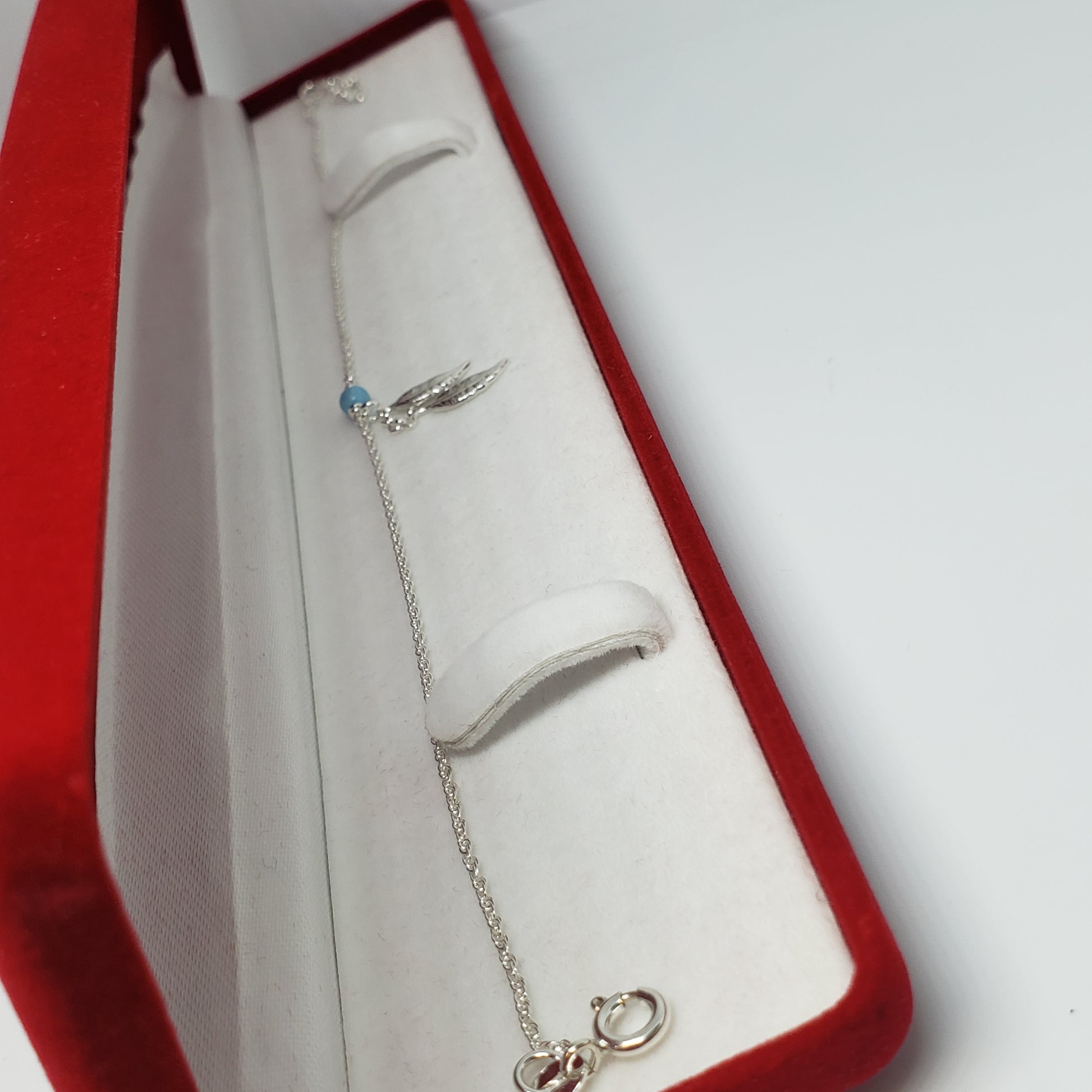 ਇਹ ਅਸਲੀ ਚਾਂਦੀ ਦਾ ਬਣਿਆ ਹੈ ਜਿਸਦੇ ਨਾਲ ਸਜਾਵਟੀ ਅਸਲੀ ਫਿਰੋਜ਼ੀ ਹੈ। ਤੋਹਫ਼ੇ ਅਤੇ ਸਵੈ-ਕਦਰ ਲਈ ਬਹੁਤ ਵਧੀਆ! ਟਰੈਡੀ ਅਤੇ ਫੈਸ਼ਨੇਬਲ
