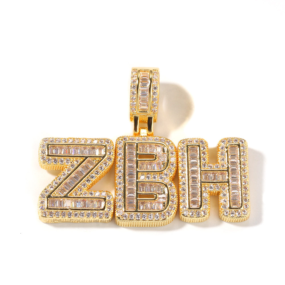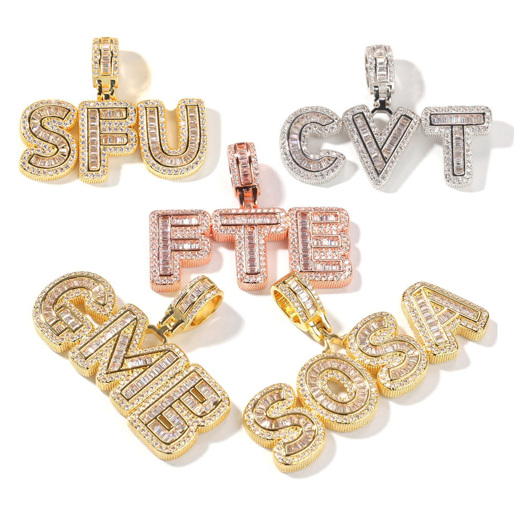 ਕਸਟਮ ਮਿੰਨੀ ਆਈਸਡ ਆਊਟ ਬੈਗੁਏਟ Cz ਸ਼ੁਰੂਆਤੀ ਅੱਖਰਾਂ ਦੇ ਨਾਮ ਦੇ ਚਾਰਮ