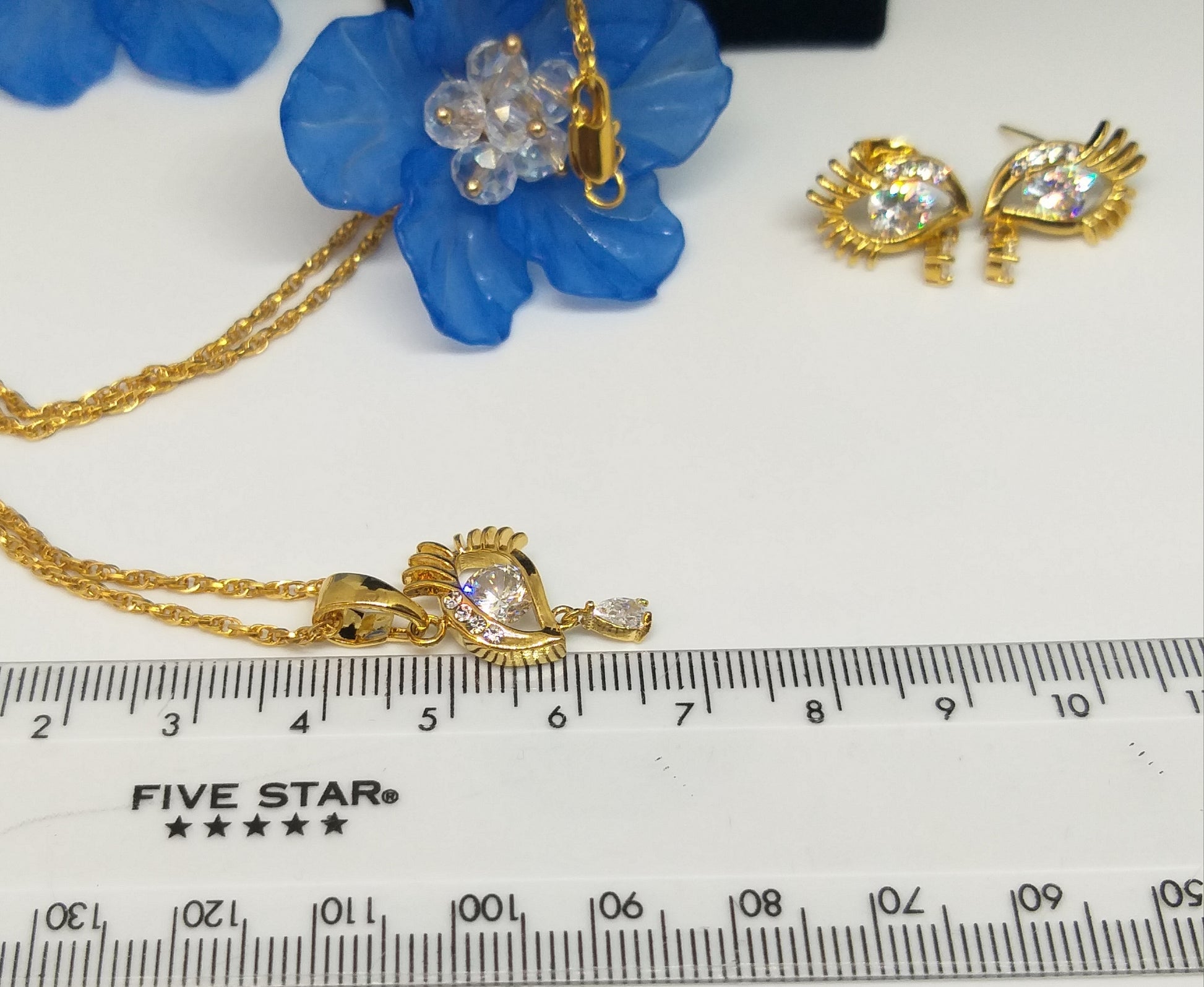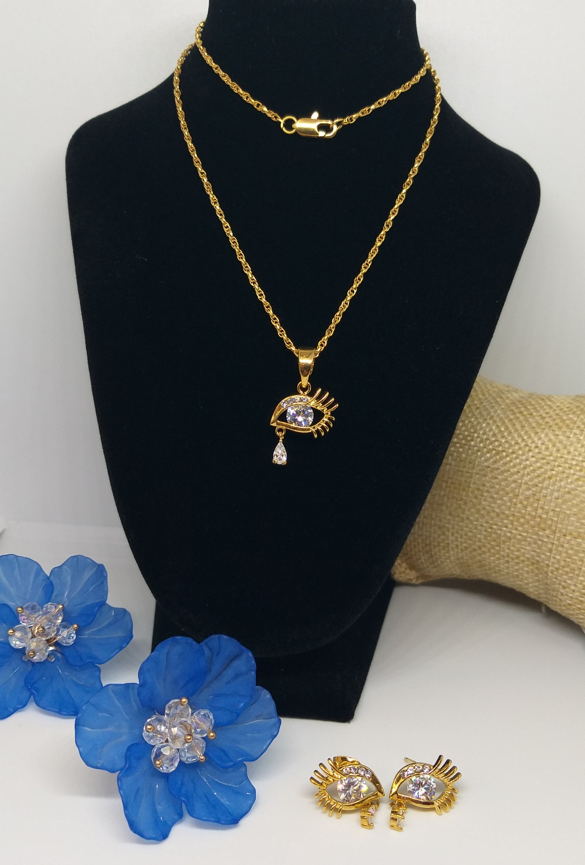 18k ਸੋਨੇ ਦੀ ਪਲੇਟਿਡ ਕਿਊਬਿਕ ਜ਼ਿਰਕੋਨੀਆ ਪੈਂਡੈਂਟ ਸੈੱਟ ਨਾਲ ਮੇਲ ਖਾਂਦੀਆਂ ਵਾਲੀਆਂ ਵਾਲੀਆਂ।
