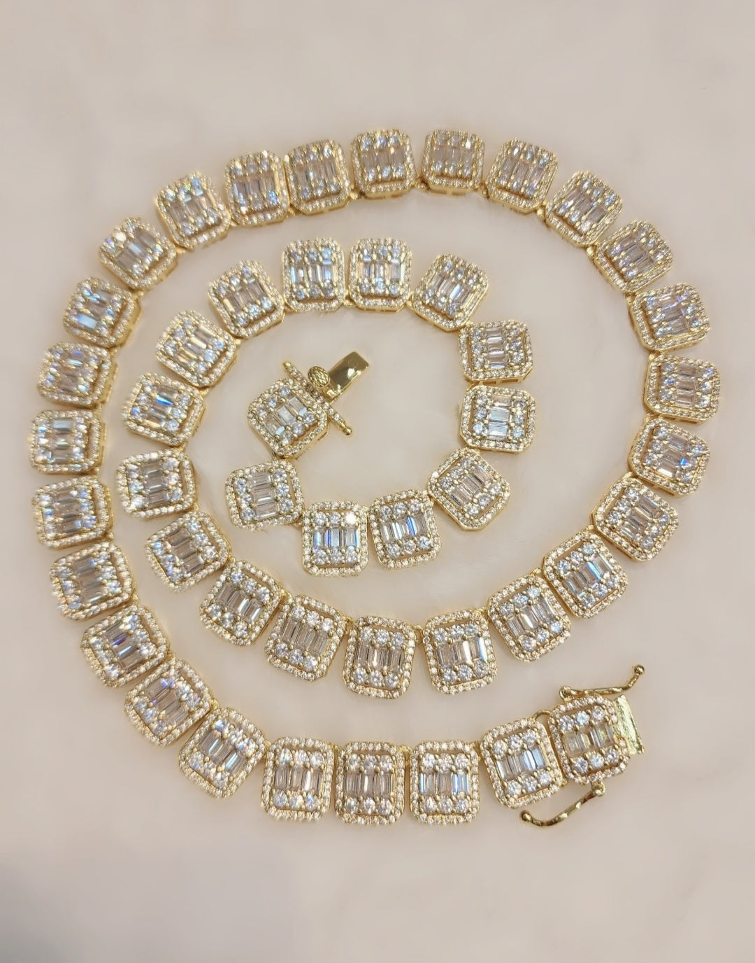 ਮਾਹਰ ਸ਼ੁੱਧਤਾ ਨਾਲ ਤਿਆਰ ਕੀਤੀ ਗਈ, ਸਾਡੀ ਆਈਸਡ ਆਉਟ ਗੋਲਡ ਪਲੇਟਿਡ ਚੇਨ ਵਿੱਚ ਕਿਸੇ ਵੀ ਪਹਿਰਾਵੇ ਨੂੰ ਇੱਕ ਸ਼ਾਨਦਾਰ ਅਹਿਸਾਸ ਦੇਣ ਲਈ ਸ਼ਾਨਦਾਰ ਕਿਊਬਿਕ ਜ਼ਿਰਕੋਨੀਆ ਪੱਥਰ ਹਨ। ਆਪਣੀ ਸ਼ਾਨਦਾਰ ਸੋਨੇ ਦੀ ਪਲੇਟਿੰਗ ਦੇ ਨਾਲ, ਇਹ ਚੇਨ ਸੂਝ-ਬੂਝ ਅਤੇ ਸ਼ੈਲੀ ਨੂੰ ਉਜਾਗਰ ਕਰਦੀ ਹੈ। ਇਸ ਲਾਜ਼ਮੀ ਸਹਾਇਕ ਉਪਕਰਣ ਨਾਲ ਆਪਣੇ ਦਿੱਖ ਨੂੰ ਉੱਚਾ ਚੁੱਕੋ।