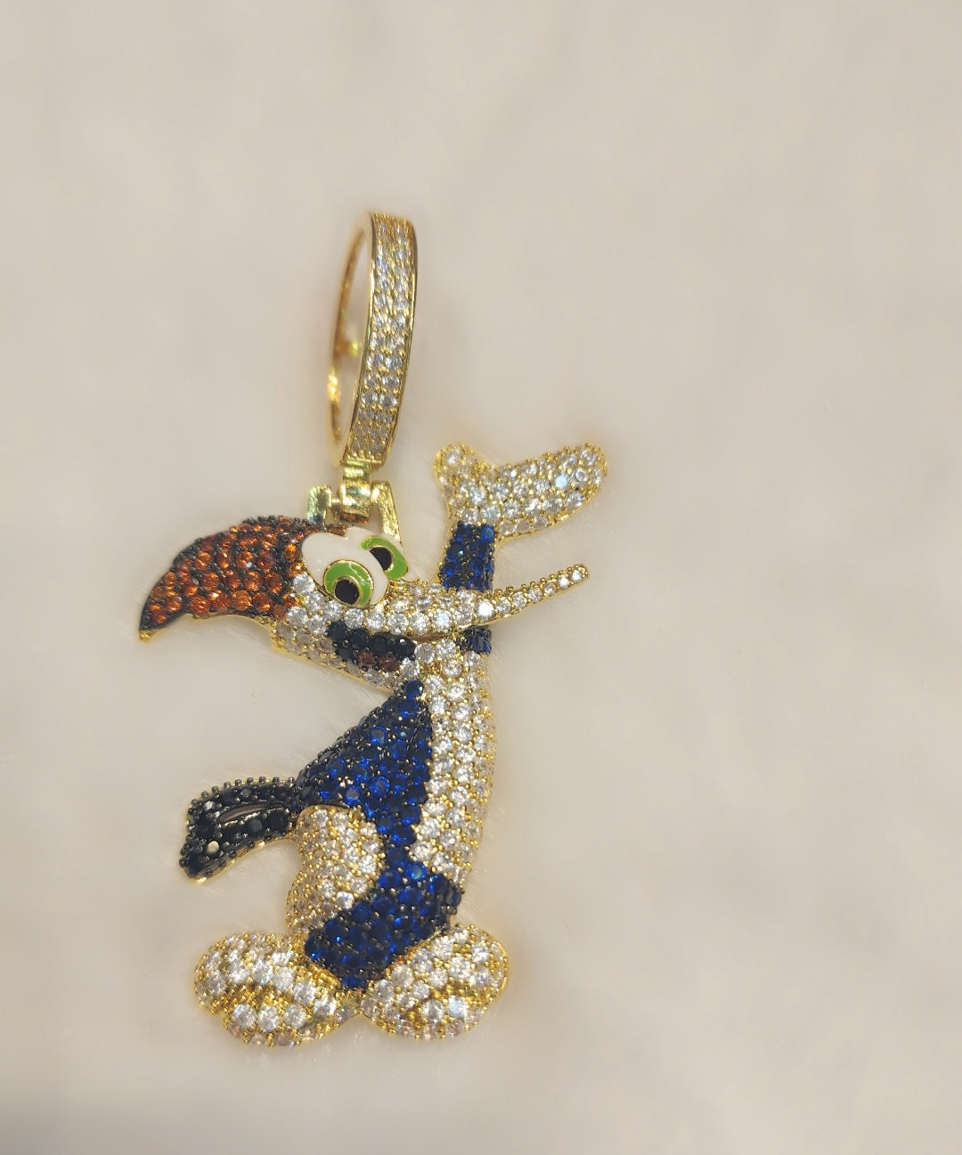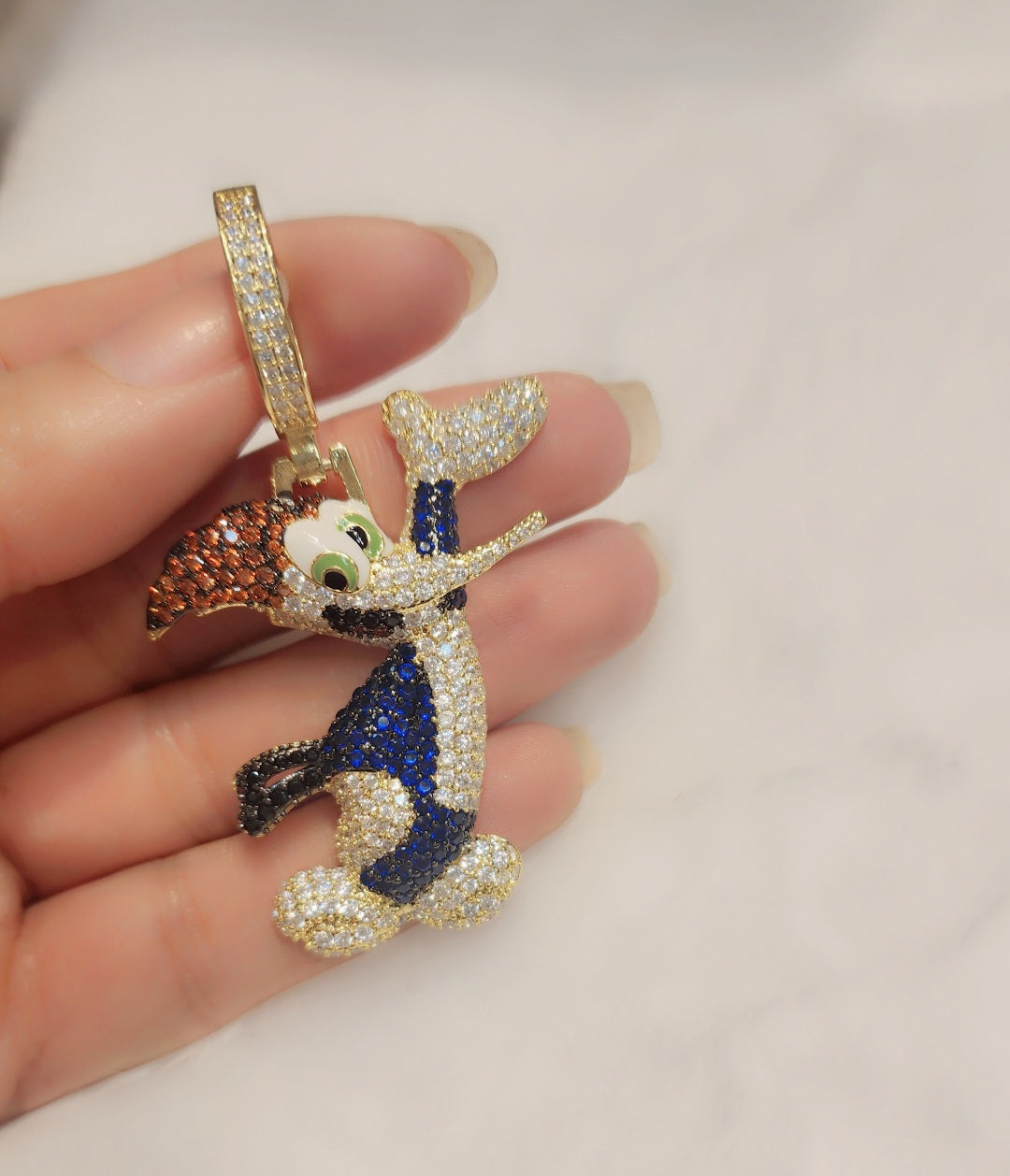 ਆਈਸਡ ਆਊਟ ਵ੍ਹਾਈਟ ਗੋਲਡ ਪਲੇਟਿਡ ਕਾਰਟੂਨ ਪੈਂਡੈਂਟ