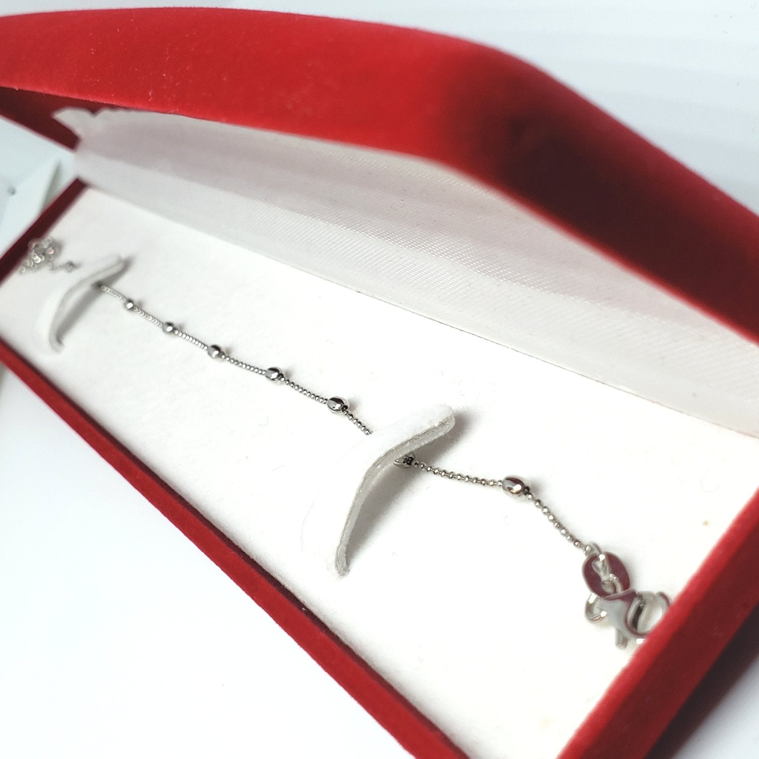 ਮਟੀਰੀਅਲ ਇਟਲੀ ਤੋਂ 925 ਸਟਰਲਿੰਗ ਸਿਲਵਰ ਹੈ ਜੋ ਬਹੁਤ ਉੱਚਾ ਹੈ ਅਤੇ ਸ਼ਾਨਦਾਰ ਬਟੇਰ ਅਤੇ ਫਿਨਿਸ਼ ਹੈ। ਇਸਦੀ 1.5mm ਮੋਟਾਈ, ਲੰਬਾਈ ਵੱਧ ਤੋਂ ਵੱਧ 10.5 ਇੰਚ ਤੱਕ ਐਡਜਸਟੇਬਲ ਹੈ।