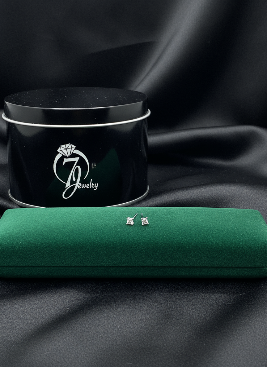 ਅਸਲੀ ਚਾਂਦੀ ਦੇ ਸਟੱਡ (ਵਰਗ ਪੱਥਰ)