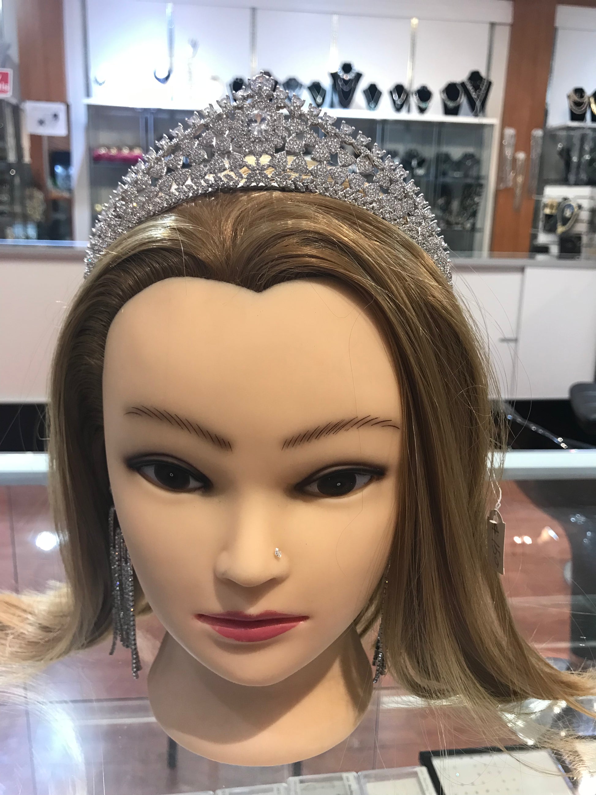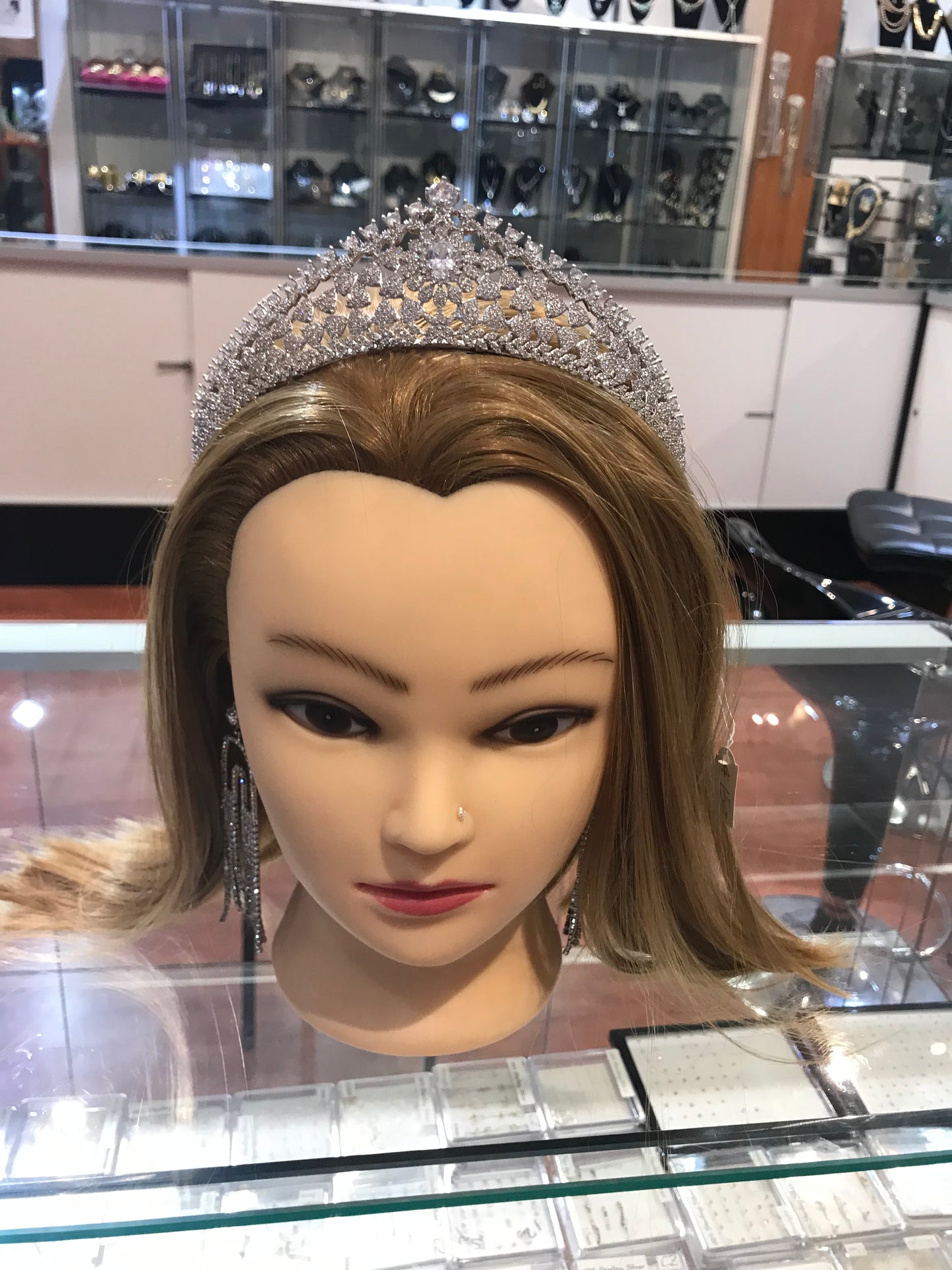 CZ Cubic Zirconia Princess Bridal Silver Crown Women's Hair Jewelry