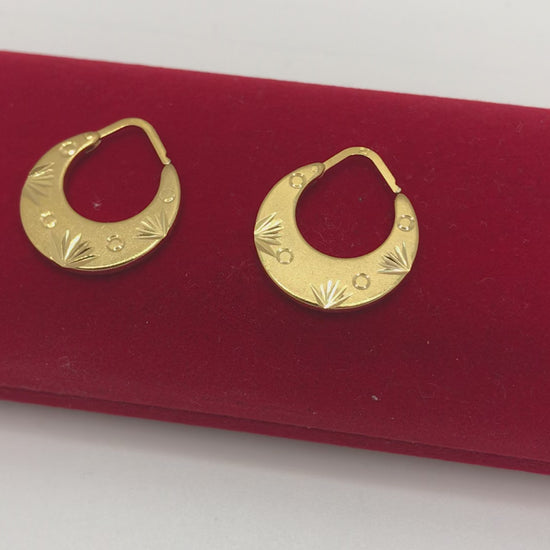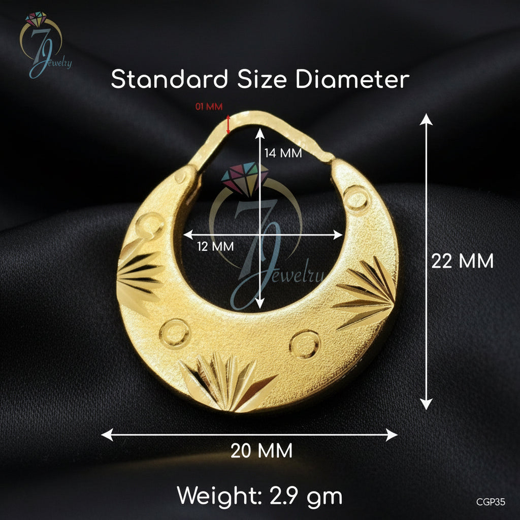 18k Gold plated on copper nattiyan stylish and modern design Earrings. Color is guaranteed and quality is durable for every day wearing. Nickel and lead free/hypoallergenic. It has a moon shape and very popular among adults male and teenagers. It has an ear wire to open and close.