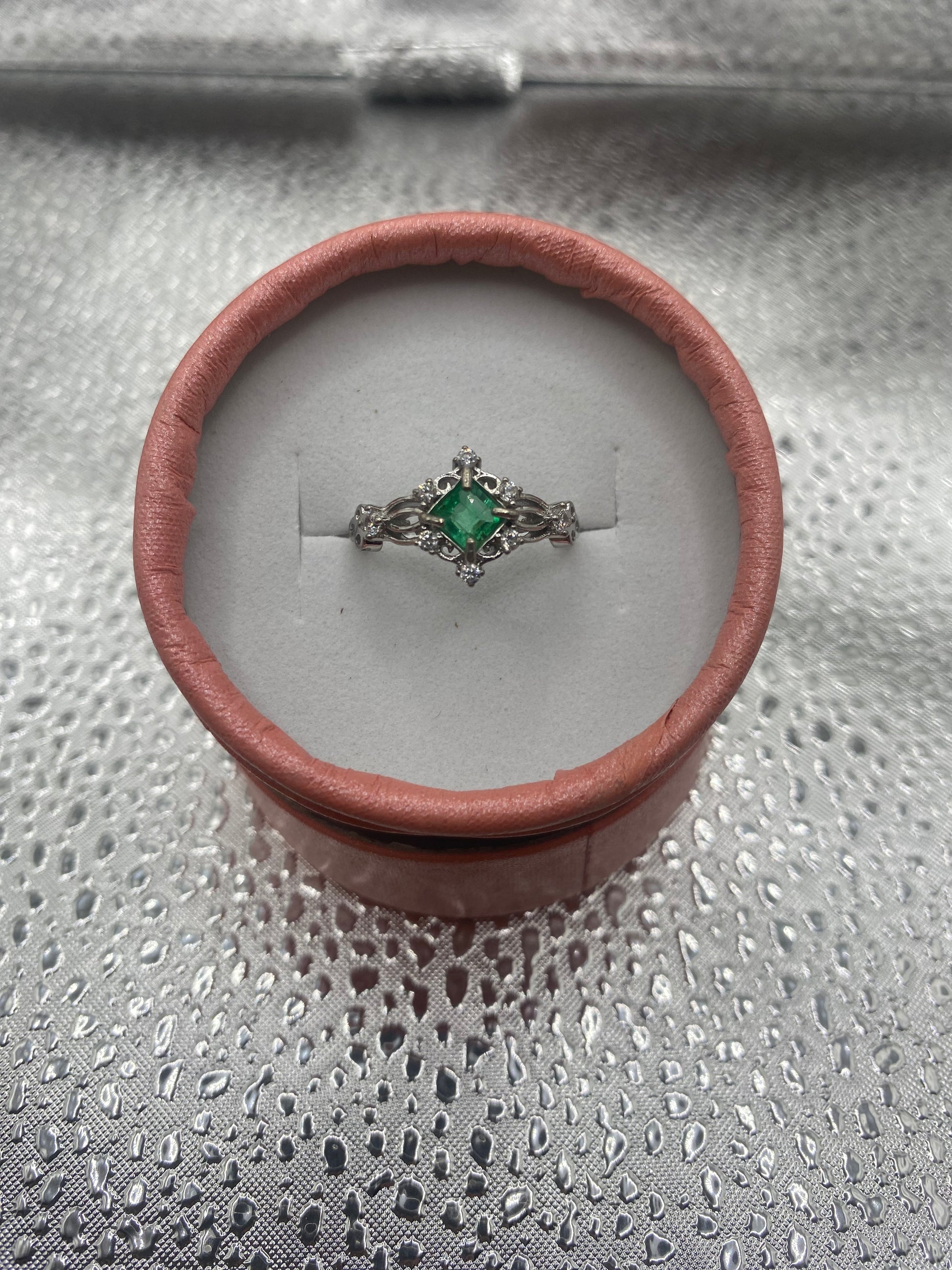 Natural Emerald Real Silver square Ring
