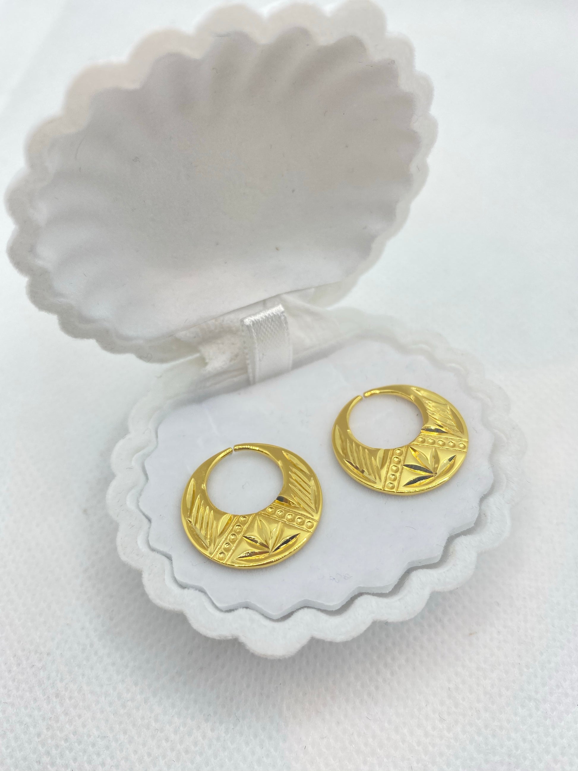 18k Gold Plated on copper. Nickel and lead free/hypoallergenic.